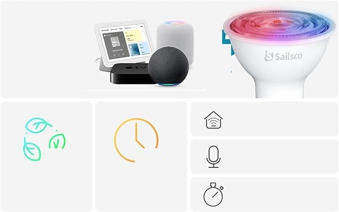 - 【Лампа, керована голосом】- GU10 Alexa Lamp сумісна з Алексом та Google Assistant, тому ви можете керувати освітленням лише голосом, наприклад. Перемикач, узгодження кольорів та зміни сцени. Ви можете, наприклад, "Алекса, увімкнути світло в спальні". Ми беремо на себе створити для вас простий та зручний спосіб життя