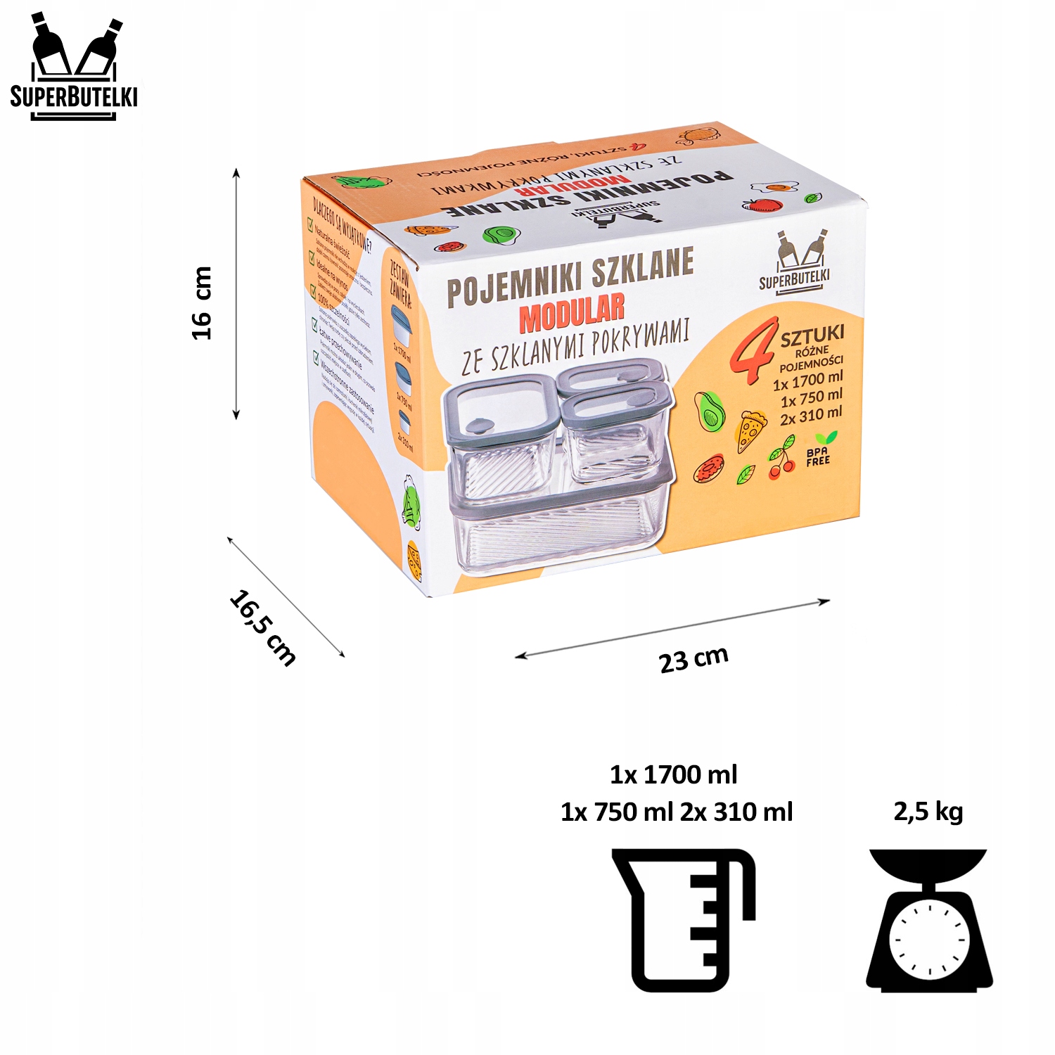 Набір скляних контейнерів модульні 2x 310 мл + 1x 750 мл + 1x 1700 мл - свіжість під контролем!