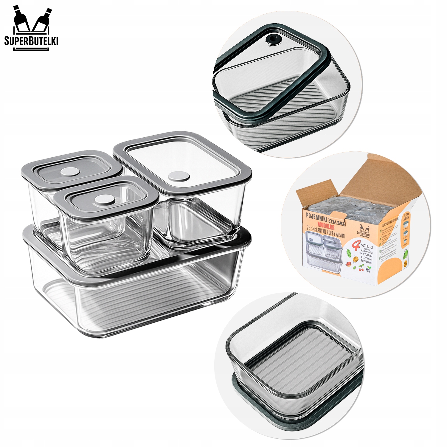 Набір із 4 скляних модульних контейнерів зі скляними кришками - більше місця, більше порядку, більше комфорту!