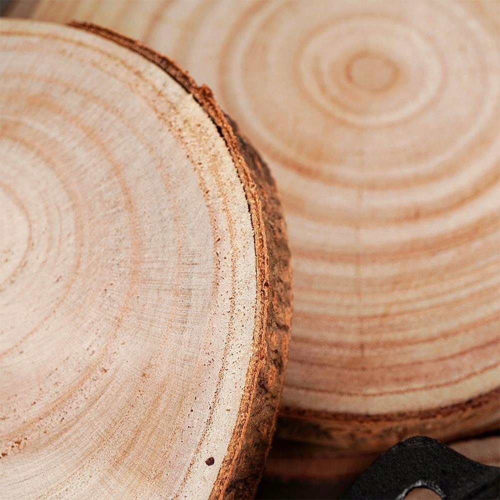 ✅ ПРАКТИЧНО - Набір із чотирьох декоративних скибочок дерева з корою натурального кольору. Кожен пластир має різний діаметр: 11,5 см, 16 см, 19 см, 22 см. Товщина подушечок 2,5 см.