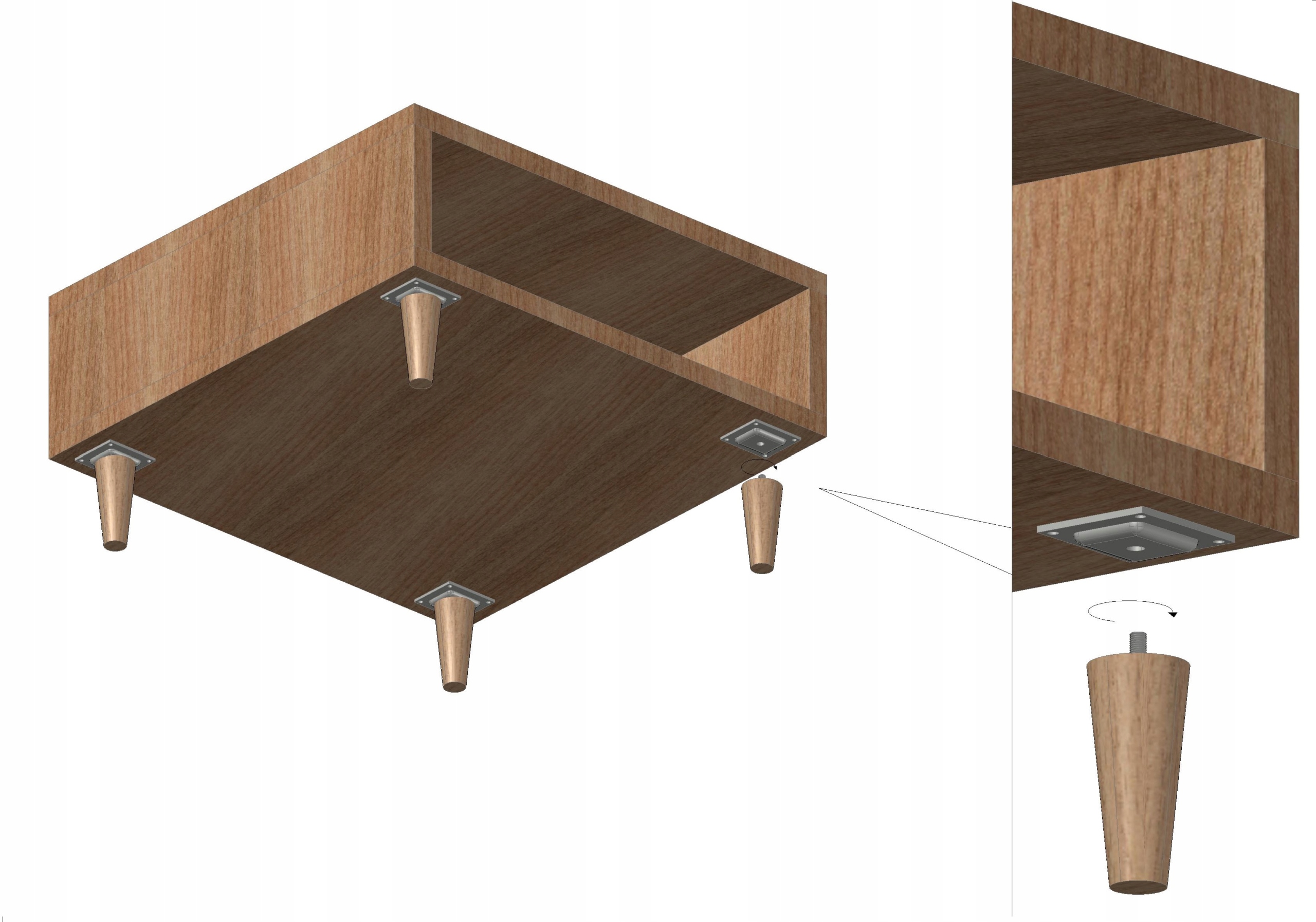 Дубові ніжки висотою 10 см, покриті прозорим лаком, точені у вигляді конуса діаметром зверху 45 мм, знизу 25 мм. Ніжки мають гвинтове гніздо М8 х 24 мм. Разом з ніжками ми надаємо вам монтажну пластину та метричну шпильку, яку можна легко прикріпити до основи меблів конічними гвинтами - доступні на інших наших аукціонах. Встановлення також можна здійснити за допомогою розеток, угвинчених у деревину з внутрішньою різьбою М8. Щоб захистити основи, ми рекомендуємо наші доступні ковзанки або повсті. Ніжки пофарбовані прозорим лаком і мають сірий самоклеючий фетр для захисту від подряпин. Ніжки доступні різної висоти. Ціна вказана за 4 шт ніжки з монтажними пластинами.