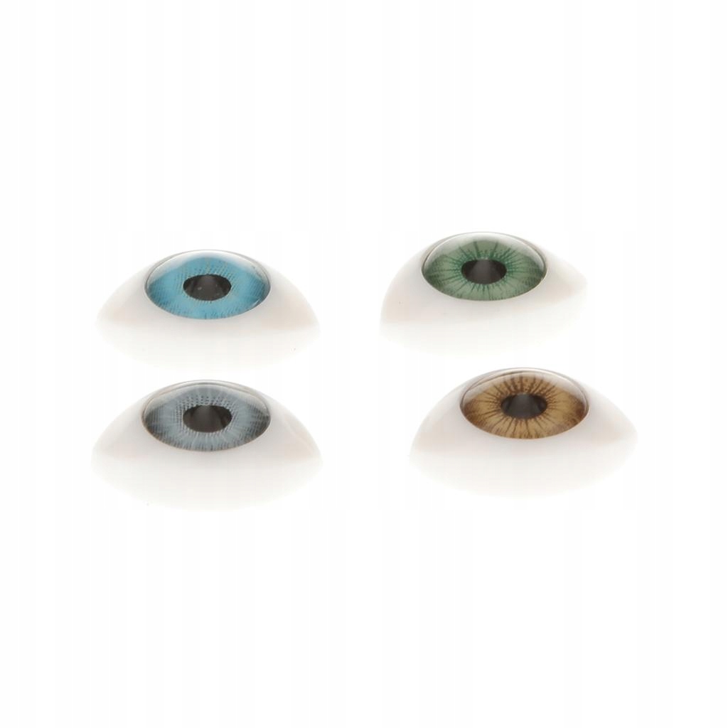 Чотири пари пластикових очей для ляльок або масок. Кожна пара представлена в чотирьох кольорах: сірому, коричневому, синьому та зеленому. Ці пластикові очі витонченої роботи та дуже . Очі ляльки овальної форми, ззаду плоскі та порожні. Це чудовий аксесуар для саморобки.