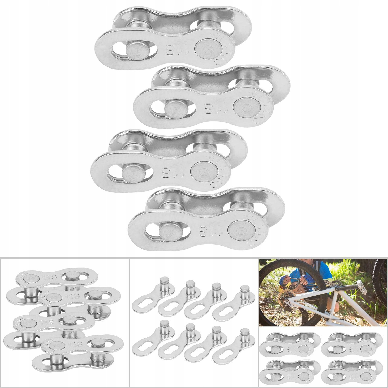 4 пари сталевих велосипедних 11-швидкісних ланцюгів, відсутні ланки, з’єднувальні частини, велосипедні аксесуари, срібні