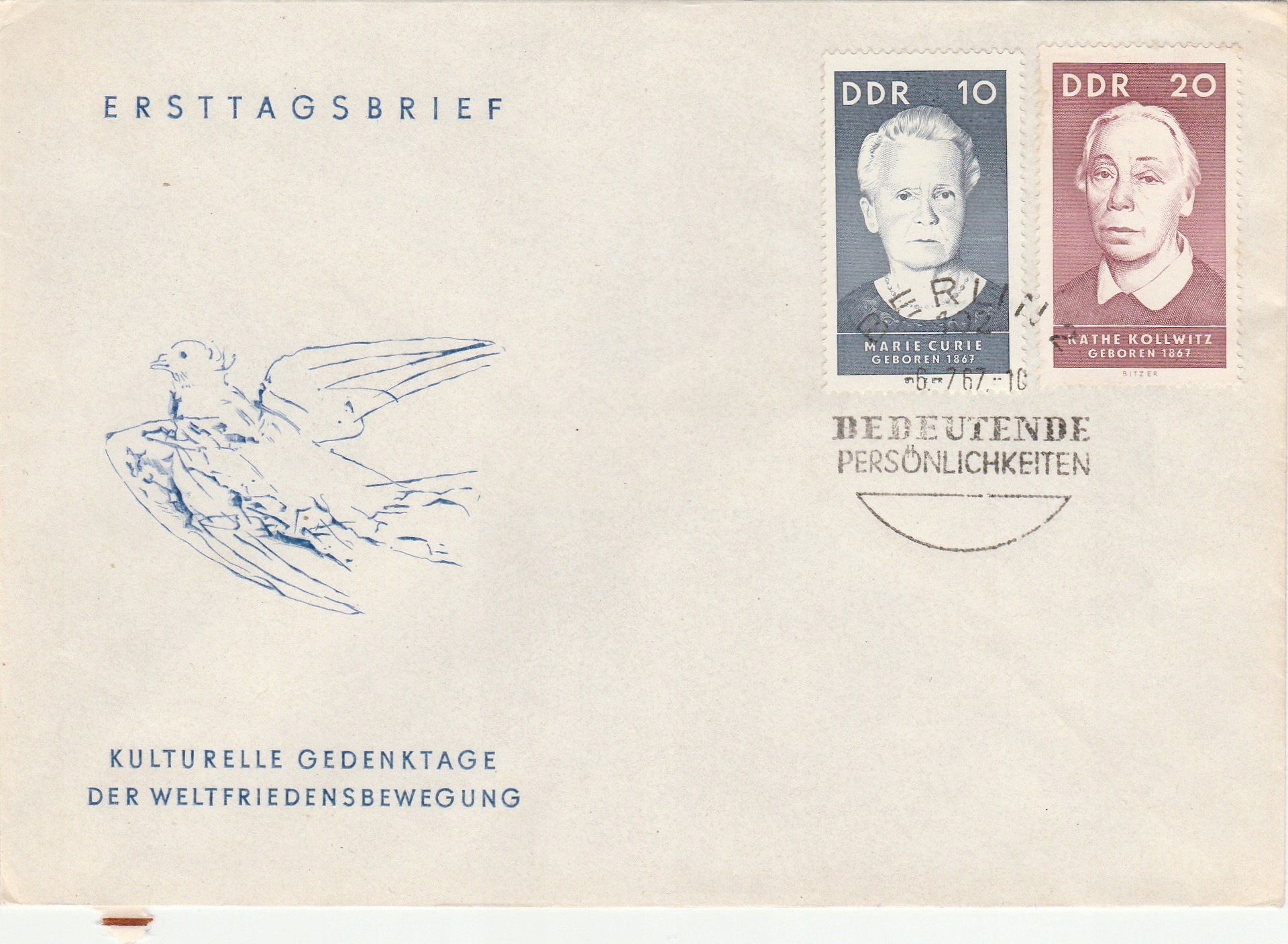 4 поштові відправлення - Марії Кюрі-Склодовської: Індія, Дагомея, Аргентина, НДР
