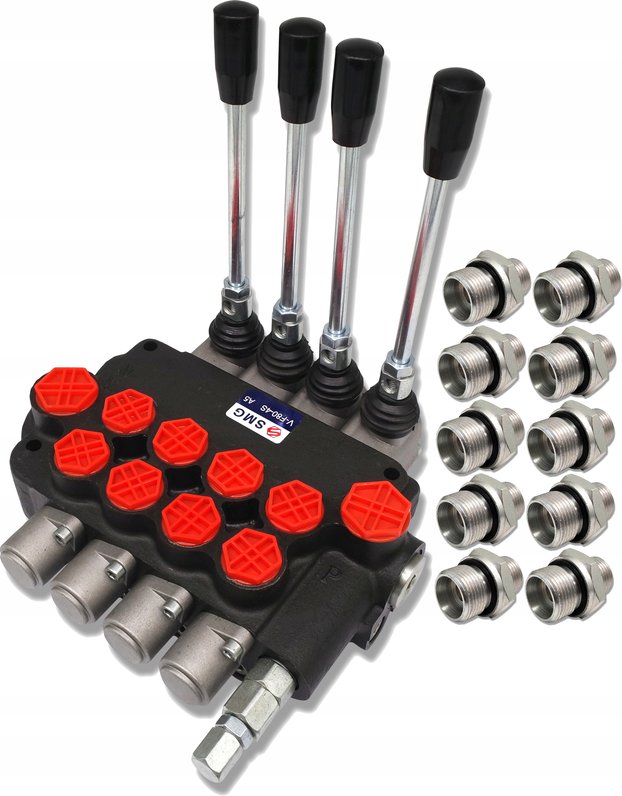 4-СЕКЦІЙНИЙ ГІДРАВЛІЧНИЙ РОЗДІЛЬНИК, 80 л ЗІ З’ЄДНАННЯМИ (НІПЕЛЯМИ)