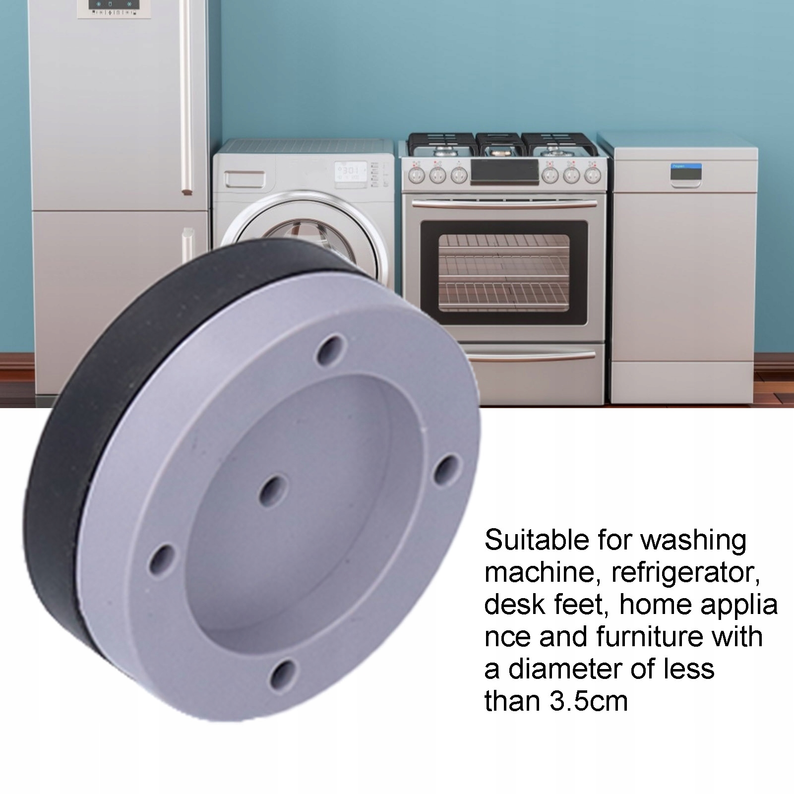 4. Підходить для пральних машин, холодильників, ніжок столів, побутової техніки та меблів, ніжки яких мають діаметр менше 3,5 см.