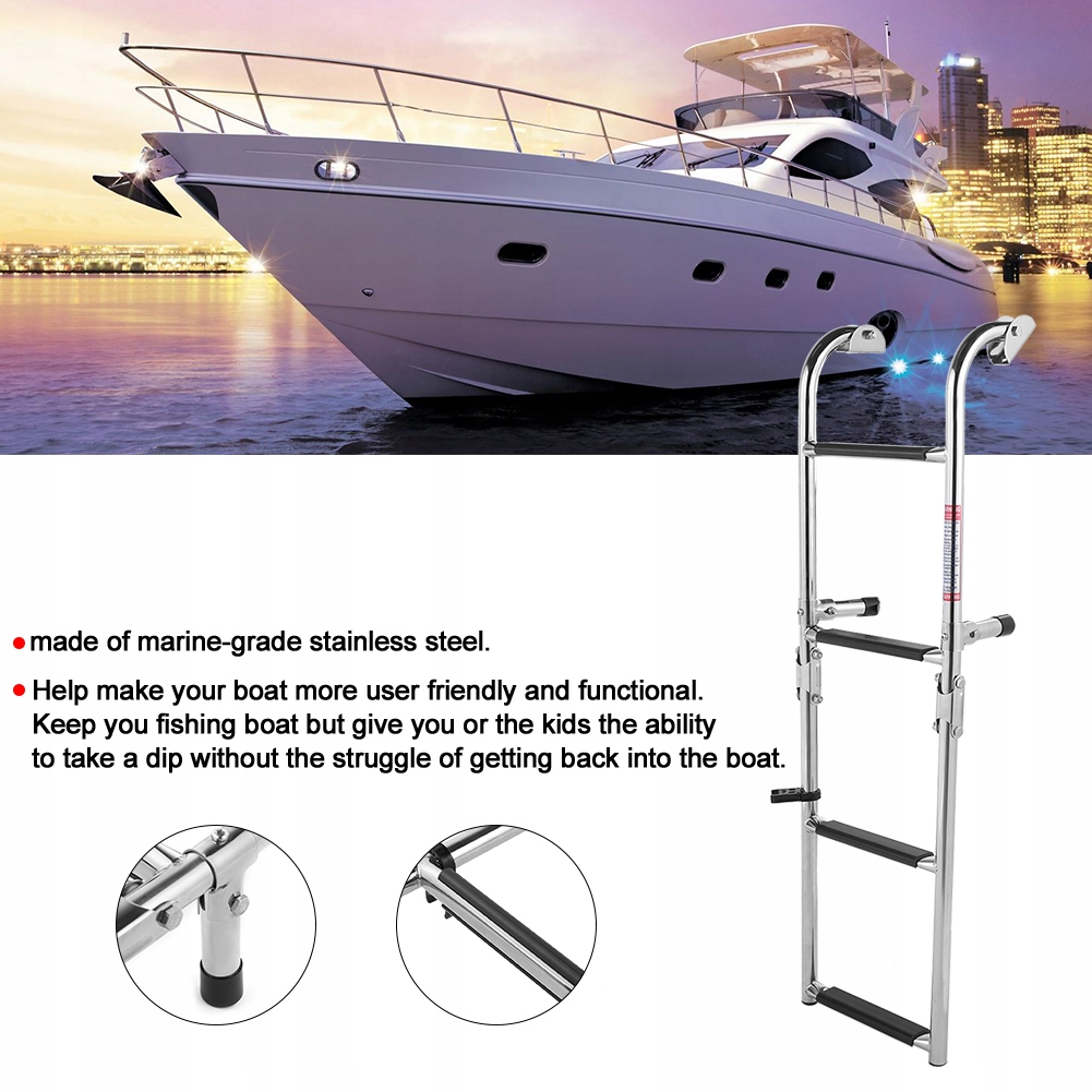 Функція:1. Якісна і гладка розкладна драбина виготовлена з морської нержавіючої сталі. Товщина трубки приблизно 22 мм / 0,9 дюйма.