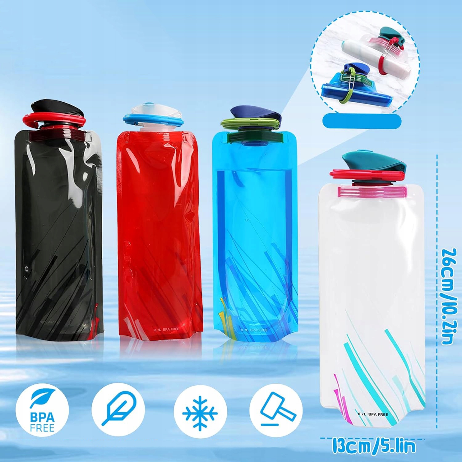 4 SZT SKŁADANA BUTELKA NA WODĘ 700 ML WIELOKROTNEGO UŻYTKU NA WĘDRÓWKI