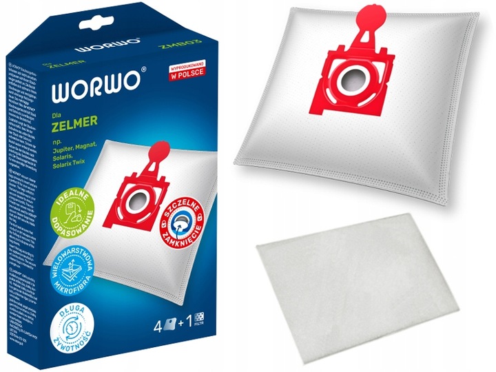 4 МІШКИ ДЛЯ ПИЛОСОСА ZELMER JUPITER SOLARIS MAGNAT ZVCA300B ZMB03 WORWO