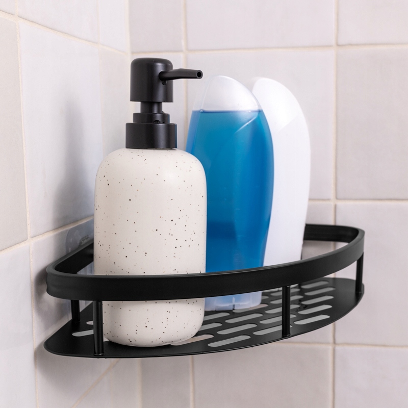 ✅ Дві місткі полиці, що містять гелі, шампуні та мила.
