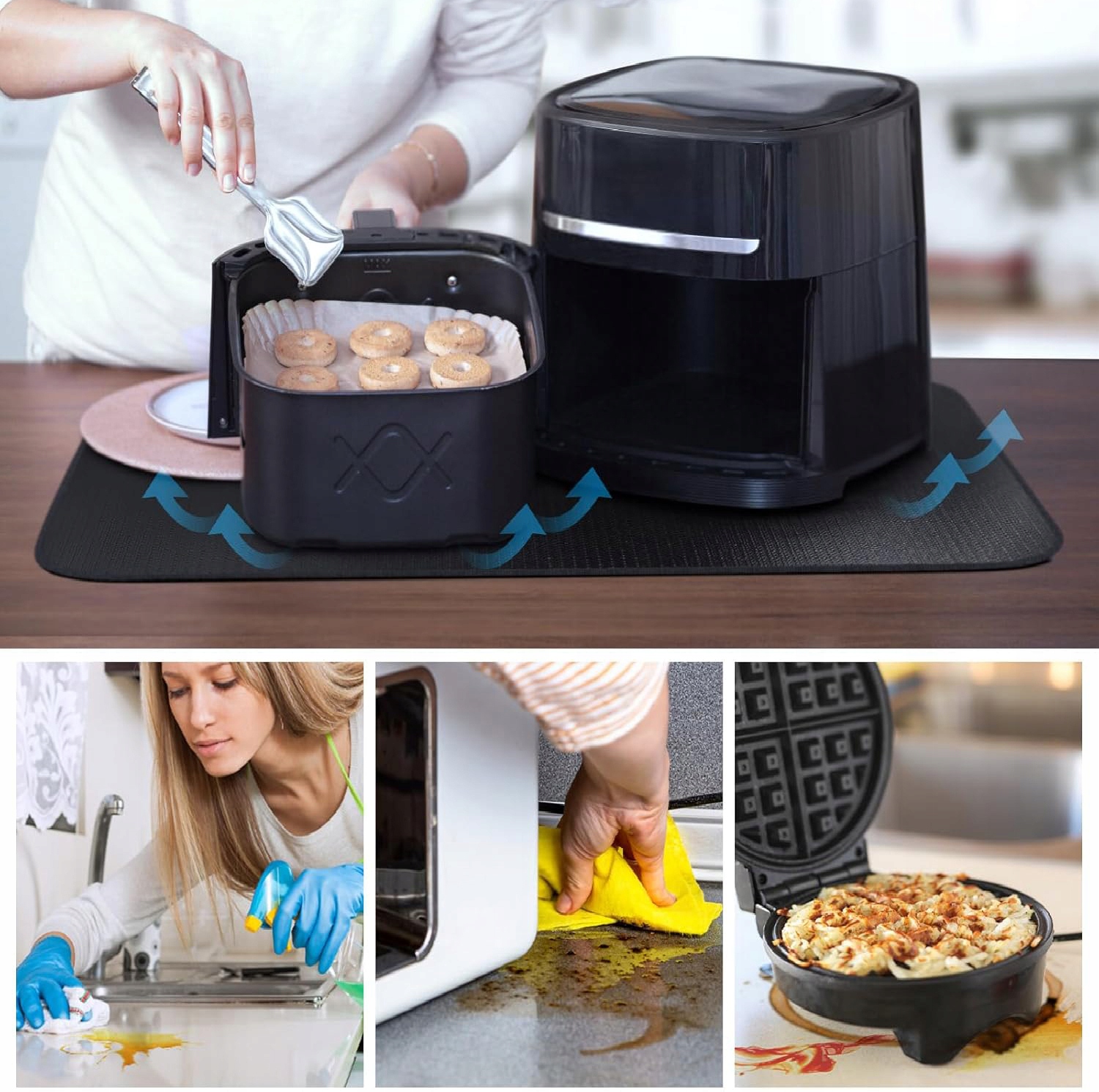 запобігти тепловому випромінюванню від кухонних приладів, таких як повітря -фрі або горщики, перед пошкодженням високої якості дерев’яних або мармурових стільниць. Наші спеціальні килимки забезпечують надійний захист, який не тільки ефективно, але й не залишає слідів, завдяки чому ваша робоча поверхня завжди залишається бездоганною.