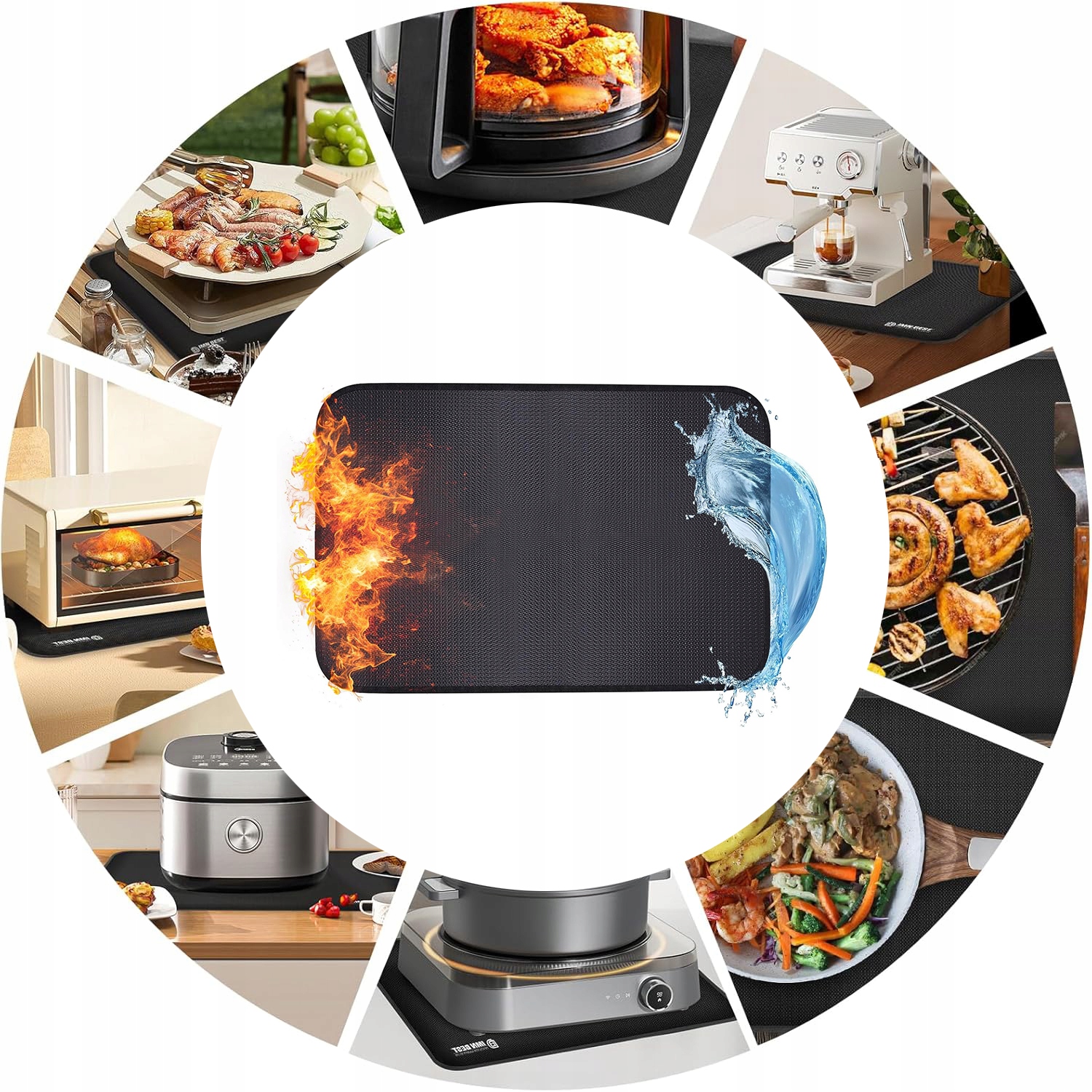 Наша вогнестійка база має розміри 40 х 60 см і надзвичайно універсальна. Він ідеально підходить для різних кухонних страв та кухонних приладів, що працюють при високій температурі, включаючи фрі, кавові машини, духовки, мікрохвильові печі, блендери, тостри, соковижималки та сковороду. Завдяки цьому у вас є надійне рішення для будь -яких потреб у кухні.