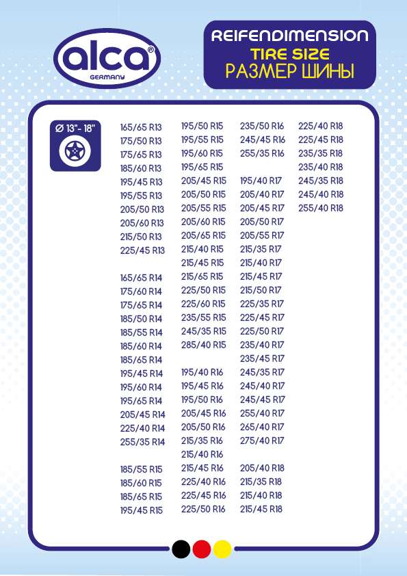 Покришки ALCA 4 шт/комплект Ø 13'' - 18''