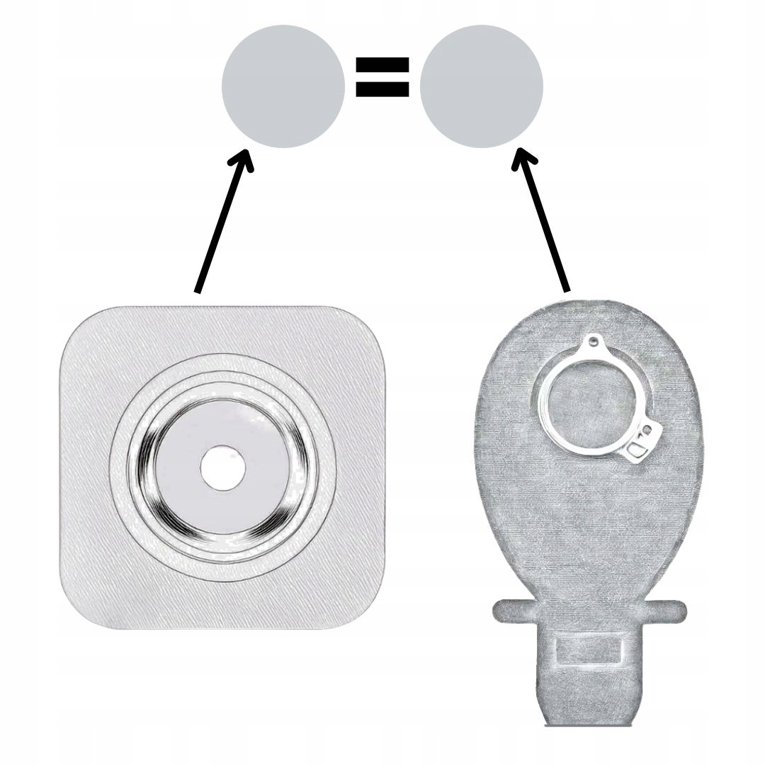 з'єднуючи тарілку та мішок, оштрафовану на Latch. Перевага полягає в тому, що плитку можна навіть приклеїти до шкіри протягом декількох днів, а щоденну заміну слід піддавати лише мішку з остомії.