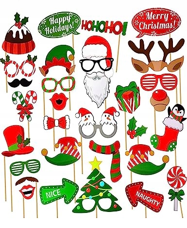 - Веселі та багаті різдвяні аксесуари: набір включає 32 різні кумедні фотоаксесуари, такі як Санта-Клаус, олені, ялинка, панчохи, окуляри, борода, вуса тощо, спеціально розроблені для різдвяної вечірки, кожна форма унікальна, зручна для вас, щоб повозитися з різними сірниками з друзями та створити свій фотографії більш наповнені індивідуальністю.