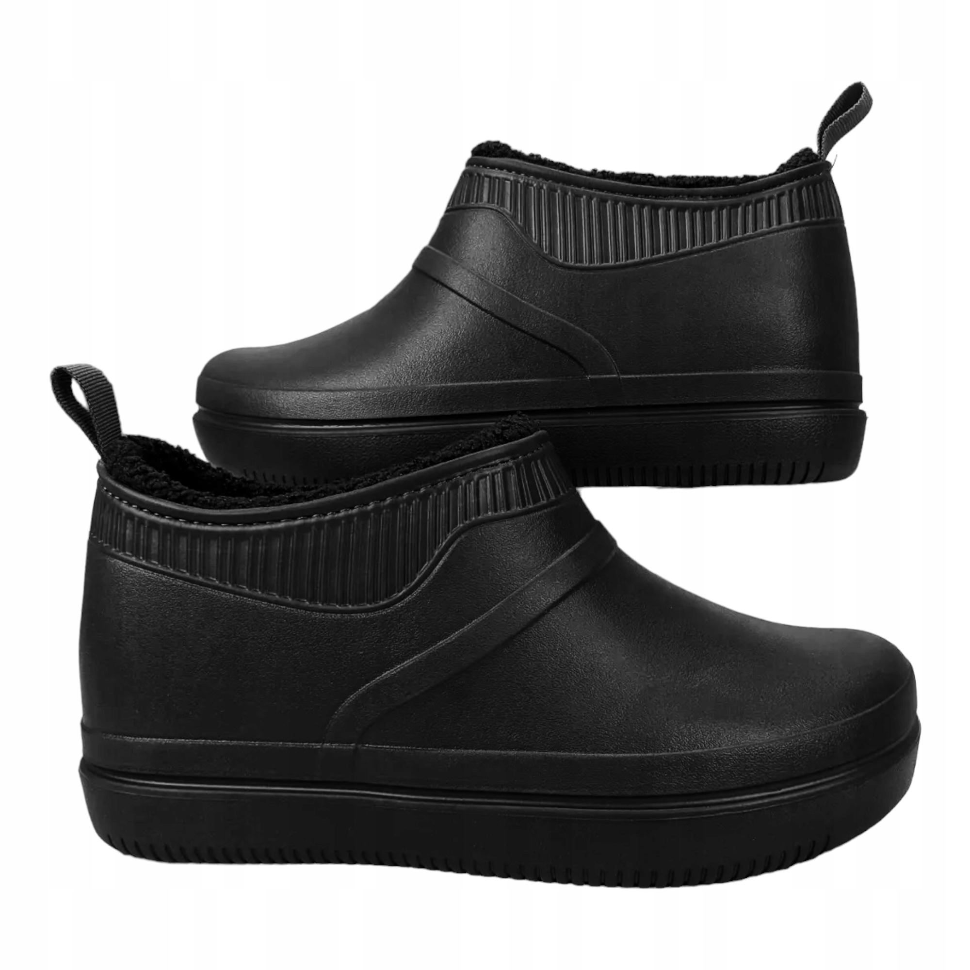 Ці чорні черевики Wellington виготовлені з високоякісної піни EVA, яка забезпечує довговічність і міцність, тож ви можете насолоджуватися ними протягом багатьох сезонів. Хутряна обробка всередині чобіт додає тепла та комфорту, що робить їх ідеальними для холодних днів.