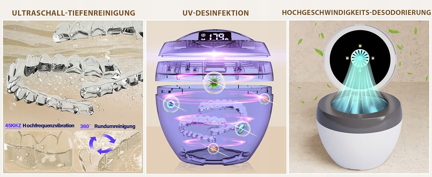 ефективно видаляє відкладення з протезів і накладання за кілька хвилин, досягаючи кожної прогалини. Замовте зараз і подбайте про гігієну, як в офісі - тихо, зручні та без агресивних хімічних речовин.