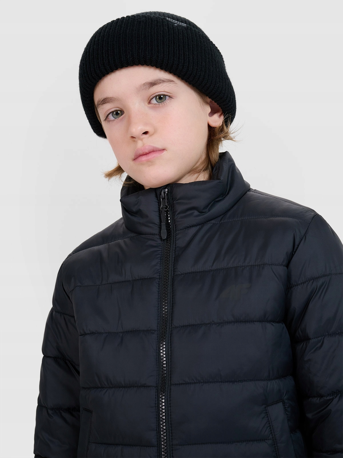 Пуховик 4F для хлопчика з легким поліестеровим утеплювачем забезпечить оптимальний тепловий комфорт без обтяження. Він м'який і простий у догляді.