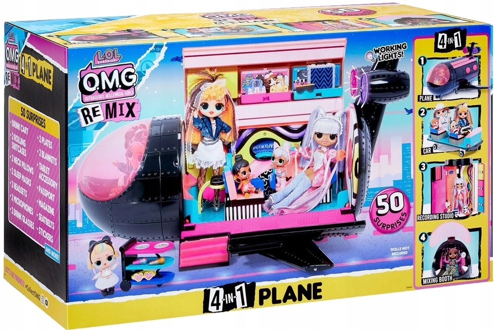 LOL SURPRISE AIRPLANE — перша машина такого типу в історії L.O.L OMG REMIX. Завдяки цьому LOL DOLLS можуть подорожувати стильно. Завдяки легкій трансформації цей продукт може стати: