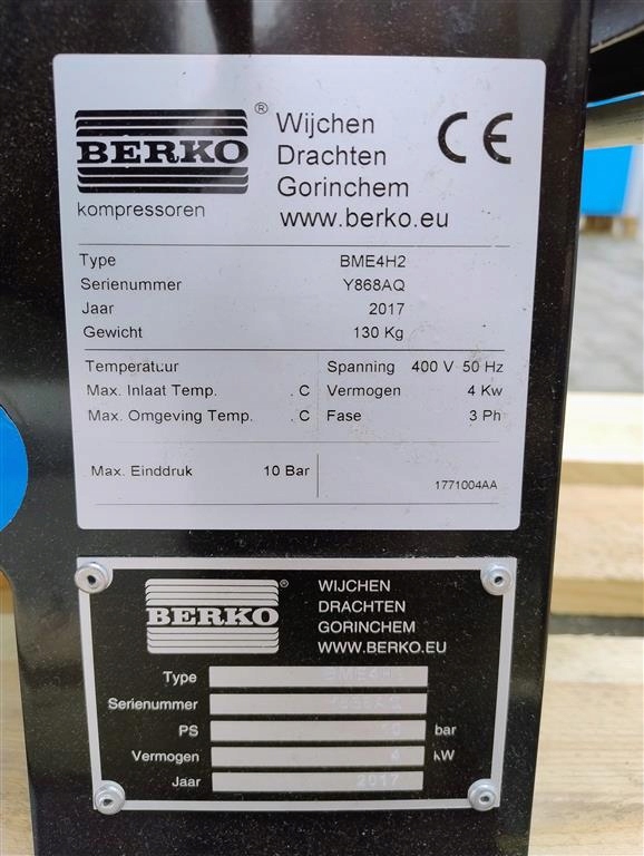 4KW Berko BME4H2 480 L/Min 10 Bar 2017
