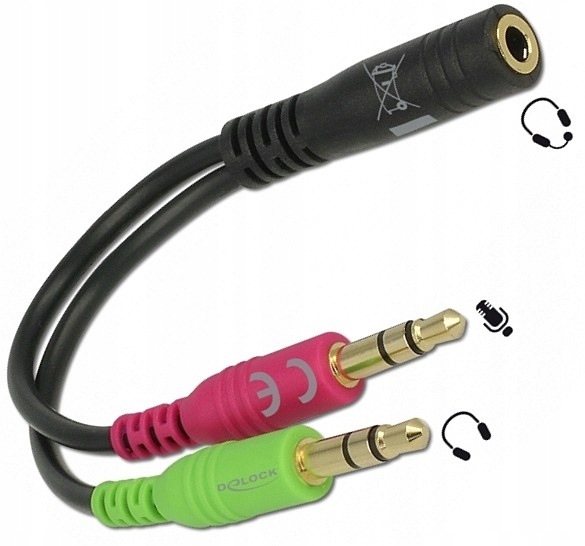 дозволяє підключати гарнітуру за допомогою одного 4-контактного штекера до двох окремих роз’ємів для навушників і мікрофона на таких пристроях, як ПК або старіший ноутбук