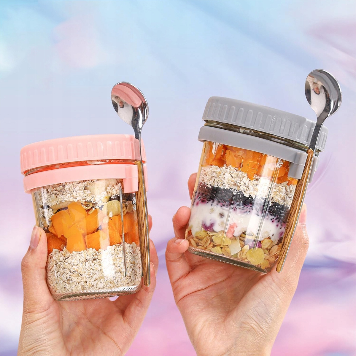 ✔️Широке використання: баночки з вівсянкою на ніч можна використовувати для приготування страв або зберігання закусок у холодильнику; у них можна зберігати вівсянку, мюслі, пудинг, йогурт, фрукти, насіння чіа, пластівці, салати, парфе та горіхи.