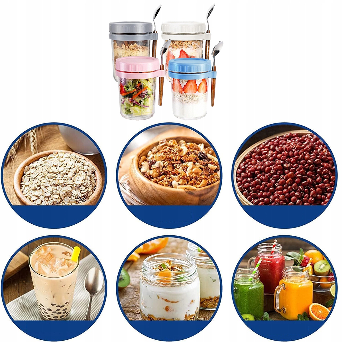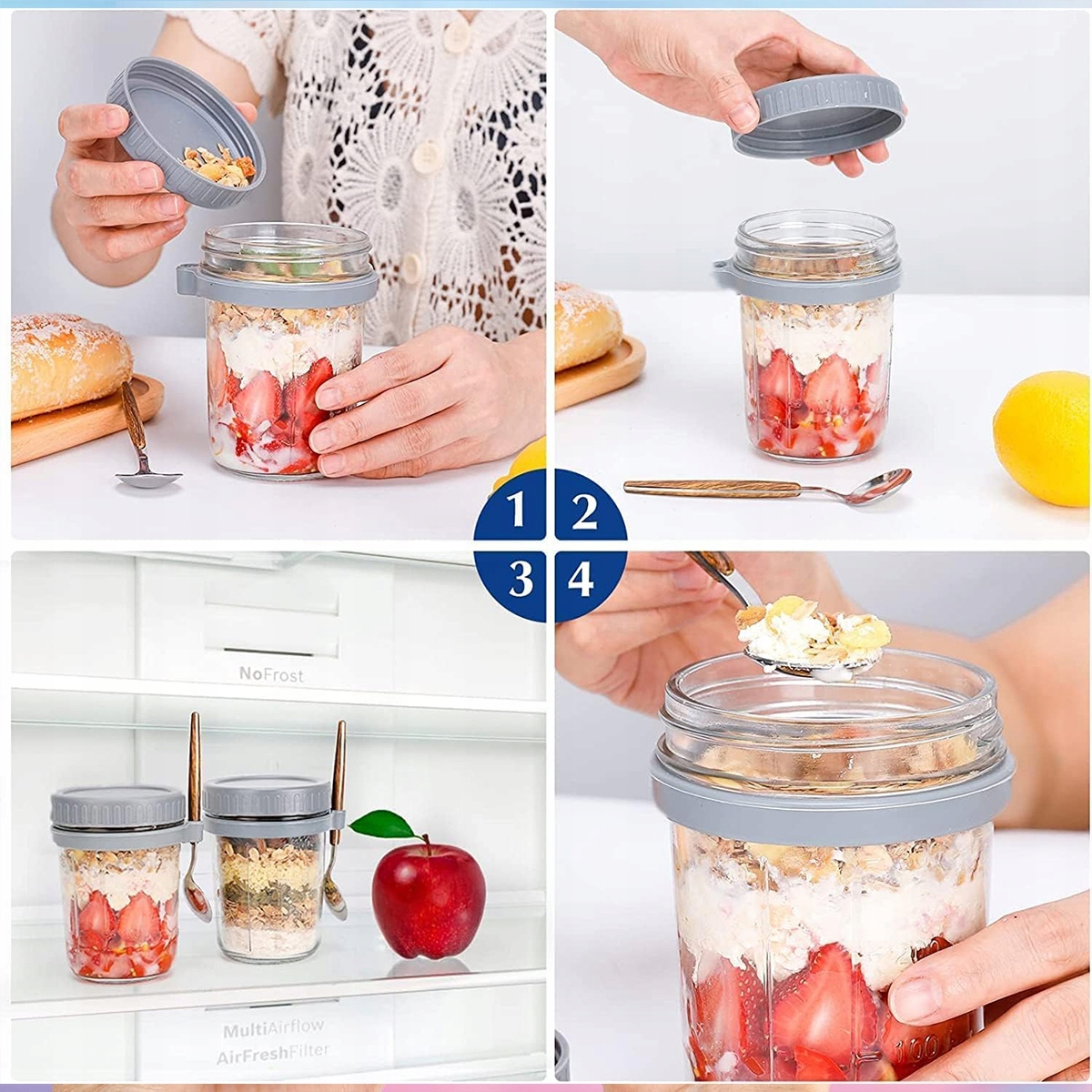 4x БАНОЧКИ ДЛЯ ЙОГУРТУ ТА ВІВСЯ З ГЕРМЕТИЧНОЮ КРИШКОЮ ОТ ВІВСЯ НА НІЧ