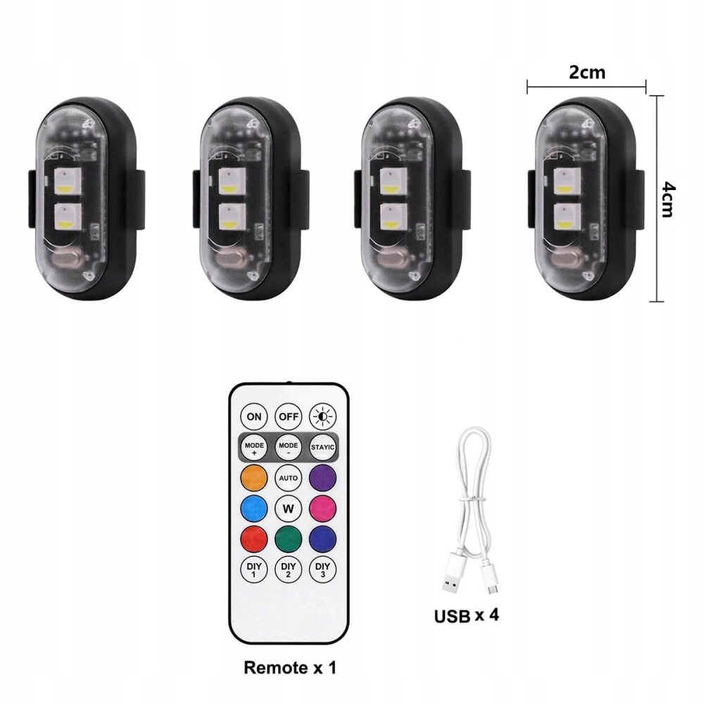 4X БЕЗДРОТОВИХ RGB LED СТРОБОСВІТЛІВ 8 КОЛЬОРІВ ДЛЯ АВТОМОБІЛЯ МОТОЦИКЛА