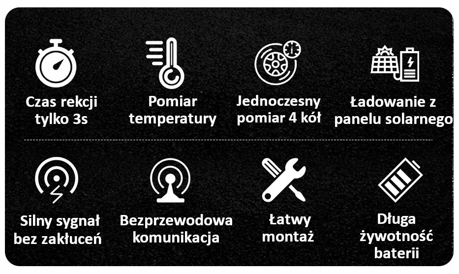 Інтелектуальна система контролю тиску в шинах у реальному часі. Він оснащений чотирма бездротовими датчиками, прикрученими до колісного клапана. Блок управління приладом оснащений чітким дисплеєм, що інформує поточний тиск і температурув кожному з коліс автомобіля. Ергономічна форма блоку управління системою TPMS дозволяє розмістити його на панелі приладів, а гелева основа гарантує, що він не зрушується під час руху. Завдяки сонячній панелі блок керування додатково заряджається від сонячної енергії в сонячні дні. Станція також оснащена роз’ємом micro USB, який використовується для заряджання акумулятора в періоди меншого сонячного світла. Повна зарядка батареї та підзарядка від сонячної енергії дозволяє пристрою працювати від 6 до 9 місяців без необхідності підключення USB-зарядного пристрою.