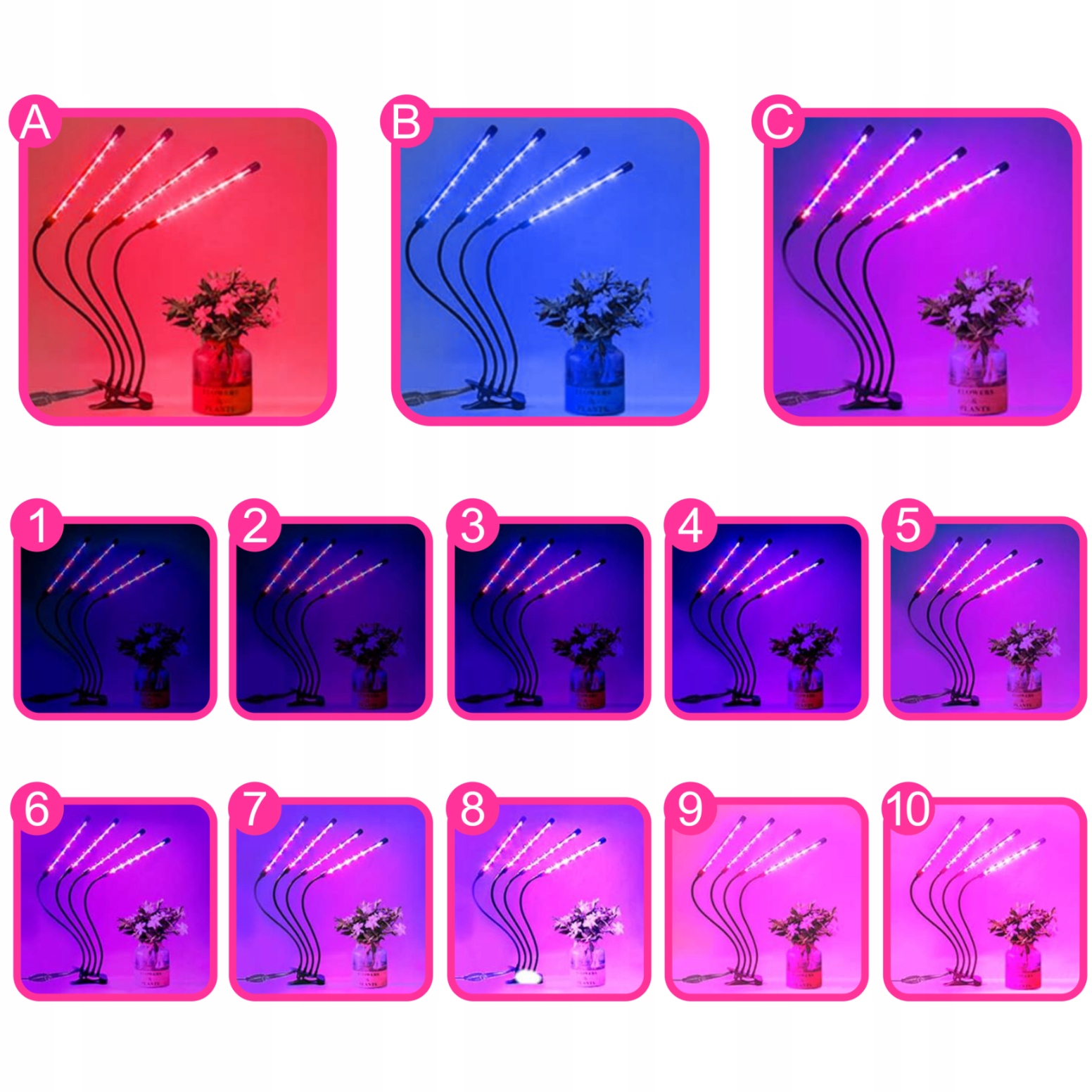 4x ЛАМПА ДЛЯ ВИРОЩУВАННЯ РОСЛИН 80x УФ-світлодіодний затиск ТАЙМЕРА ДЛЯ ВИРОЩУВАННЯ 9 РЕЖИМІВ