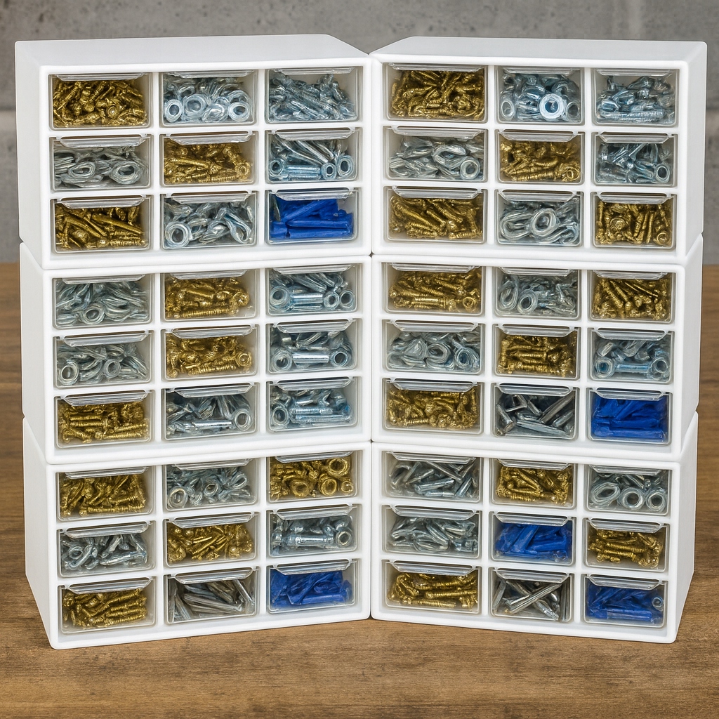 - Набір із 4 органайзерів по 9 шухляд у кожному - загалом 36 відділень для ідеального порядку