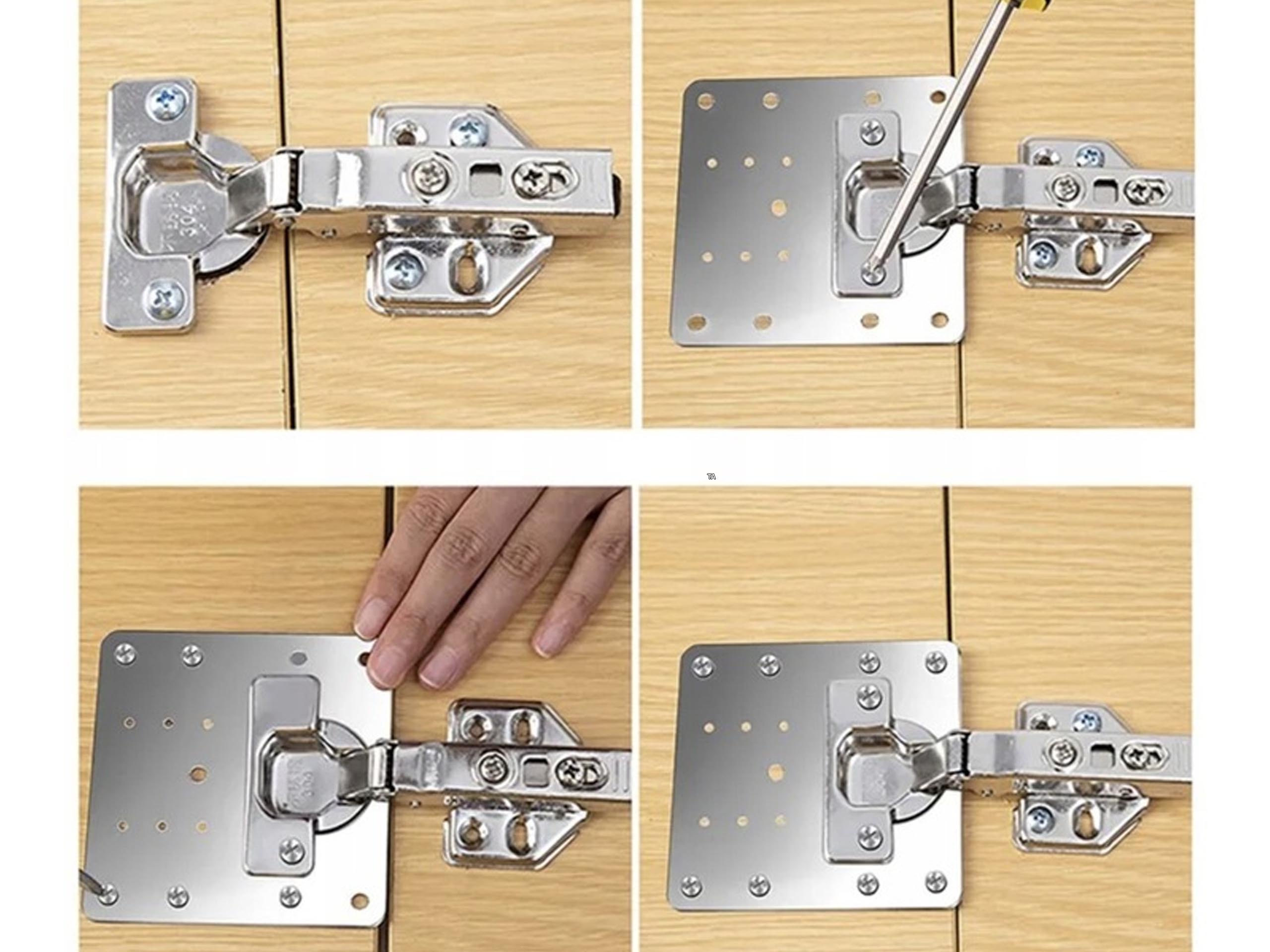 - 4 НАБОРИ ВХОДЯТЬ – набір включає 4 пластини та гвинти для складання. Цей набір дозволяє відремонтувати 2/4 петлі. Плитка універсальна в застосуванні, її можна використовувати для ремонту практично будь-яких предметів меблів.
