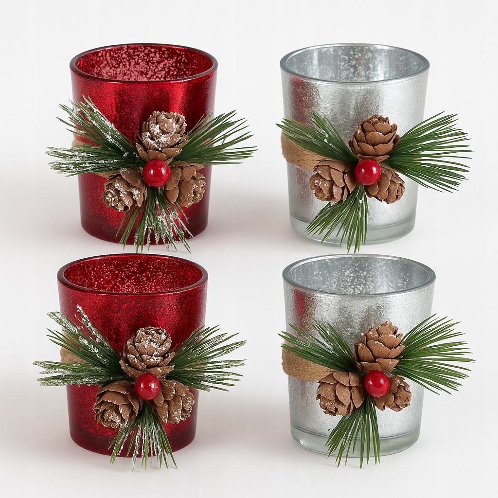 Набір із чотирьох різдвяних чайних свічників є елегантною прикрасою, ідеальною для зимового періоду.