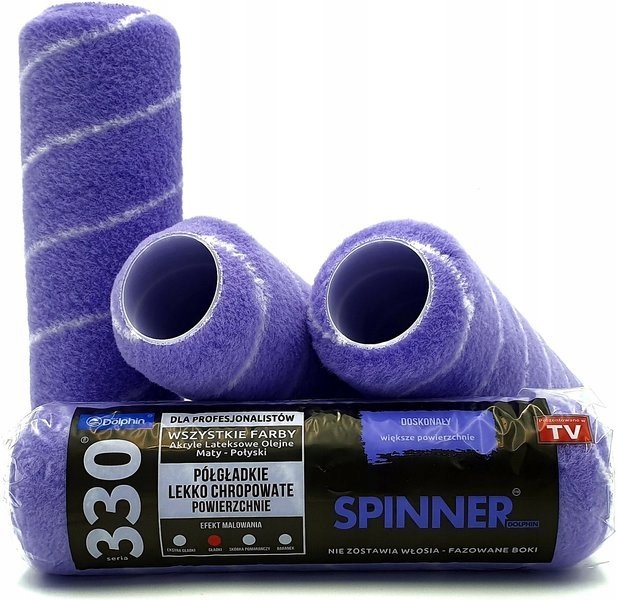 Blue Dolphin 330 SPINNER - це малярний валик, виготовлений з інноваційного матеріалу, покритого поліестером, який краще вбирає та відпускає фарбу, не залишаючи щетини. Його перевагою також є простий монтаж. Навіть після багаторазового використання зберігає початкову пухнастість. Завдяки використанню фасок на кінцях валика виключається скупчення фарби на краях.
