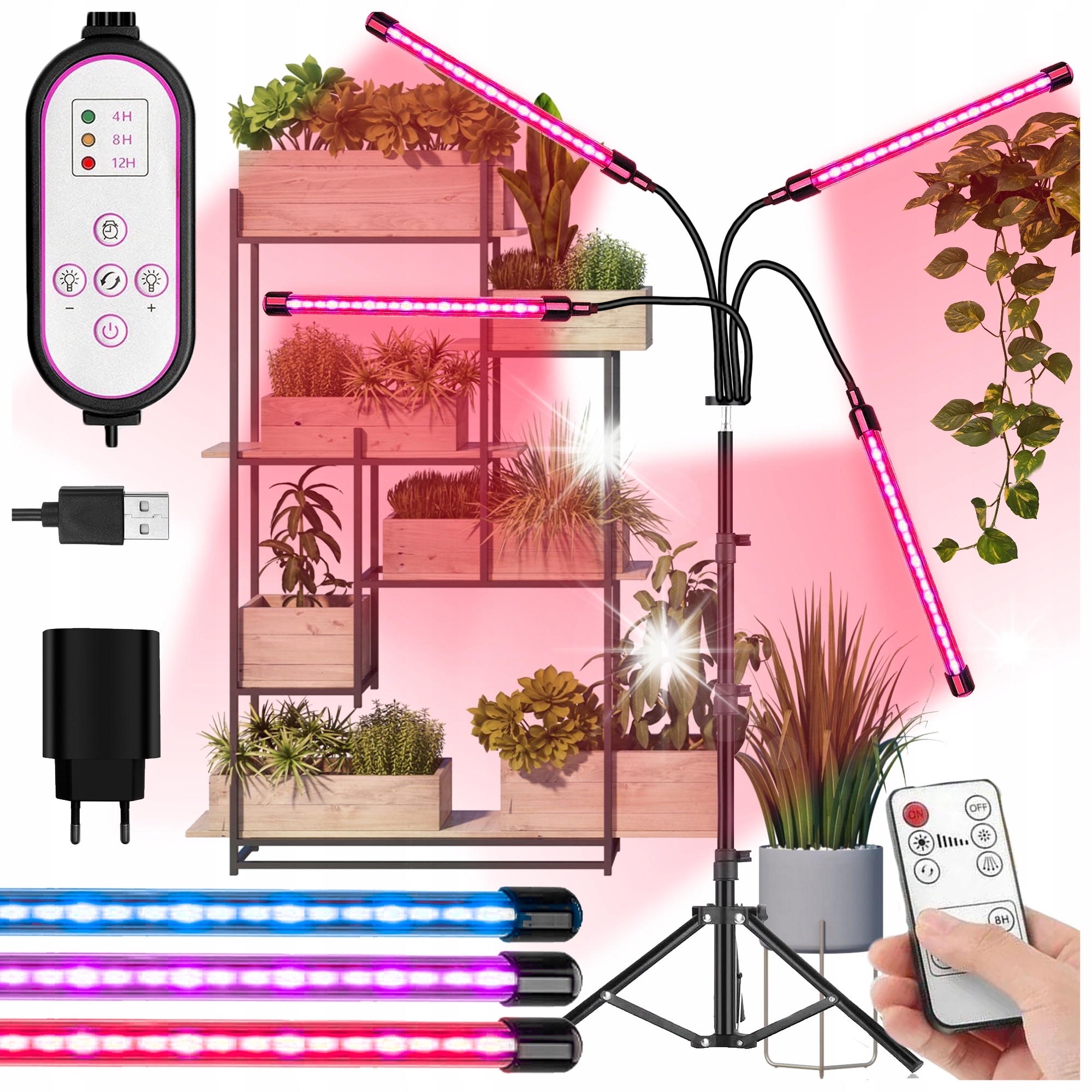 ☘️ 4x світлодіодна лампа для росту рослин на підставці з таймером і дистанційним керуванням - комплексна підтримка для ваших рослин!