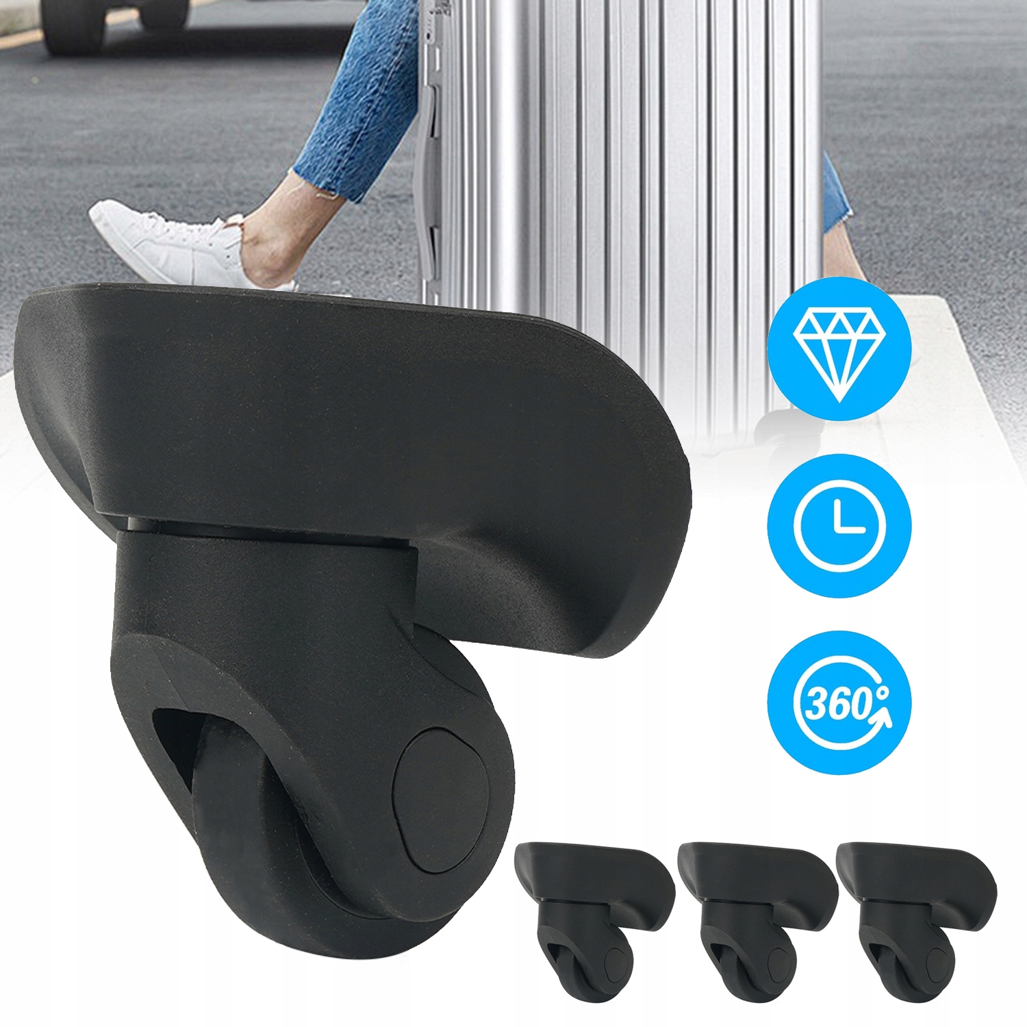 🧳🧳Порада:Щоб отримати міцні колеса для багажу, перевірте тип і розмір перед замовленням. Якщо ви вибрали правильний тип, але відстань між отворами для коліс може бути не зовсім однаковою, просвердліть отвір у корпусі та з’єднайте колеса.