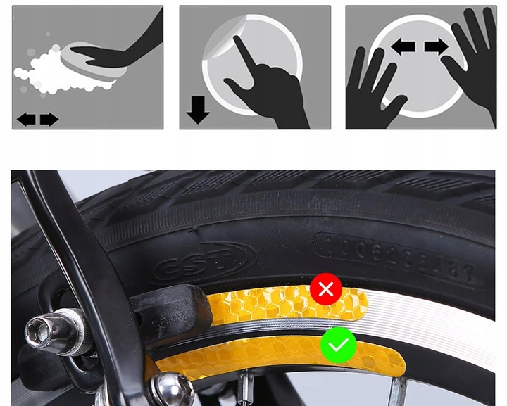 Простий у використанні: відбиваюча стрічка з високою силою склеювання до всіх чистих і гладких поверхонь. Світловідбиваюча наклейка може бути прикріплена особливо точно, її можна легко прикріпити. Спочатку розріжте світловідбиваючі смужки, а потім відшліфуйте захисну фольгу ззаду, надягайте, натисніть жорстко і готові. Відбиваюча фольга дуже стійка до розриву, що забезпечує довге життя.