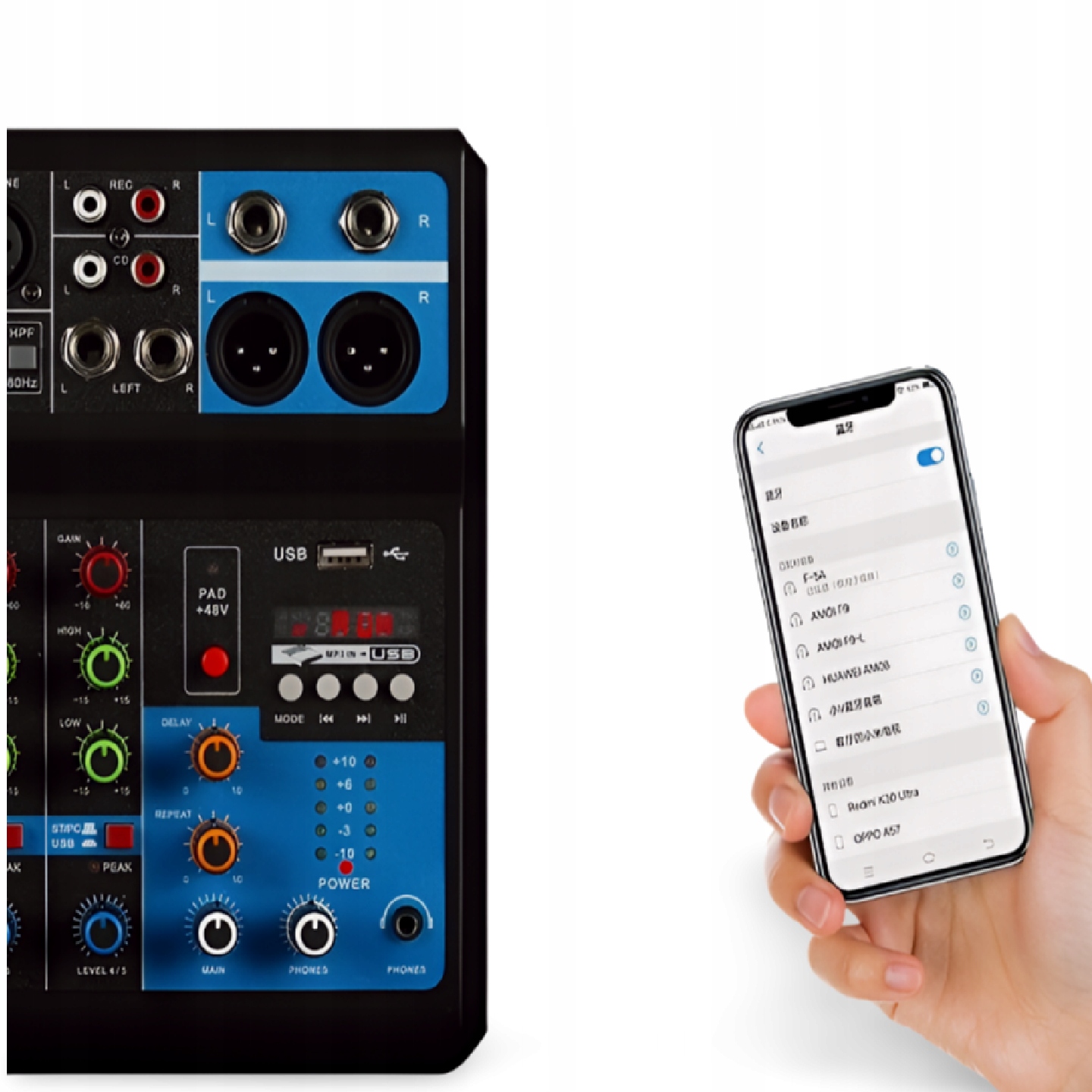 5-КАНАЛЬНИЙ 48В АУДІО DJ МІКШЕР ЗВУКОВА КАРТА АУДІО МІКШЕР З BLUETOOTH