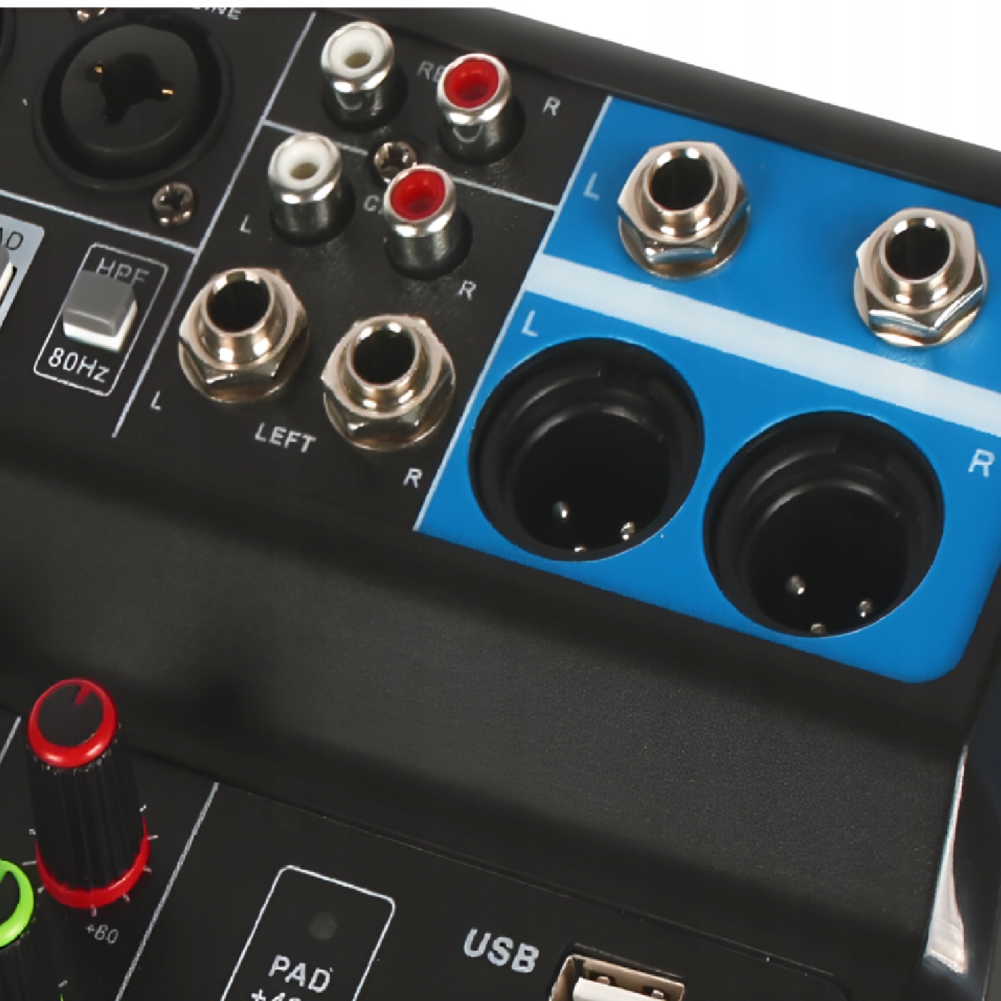 - ⏸️5-канальний мікшер:він оснащений трьома стереоканалами і набір незалежних каналів джерела стерео. І він використовує потенціометр високої чутливості, який може точно контролювати гучність кожного сигналу каналу.