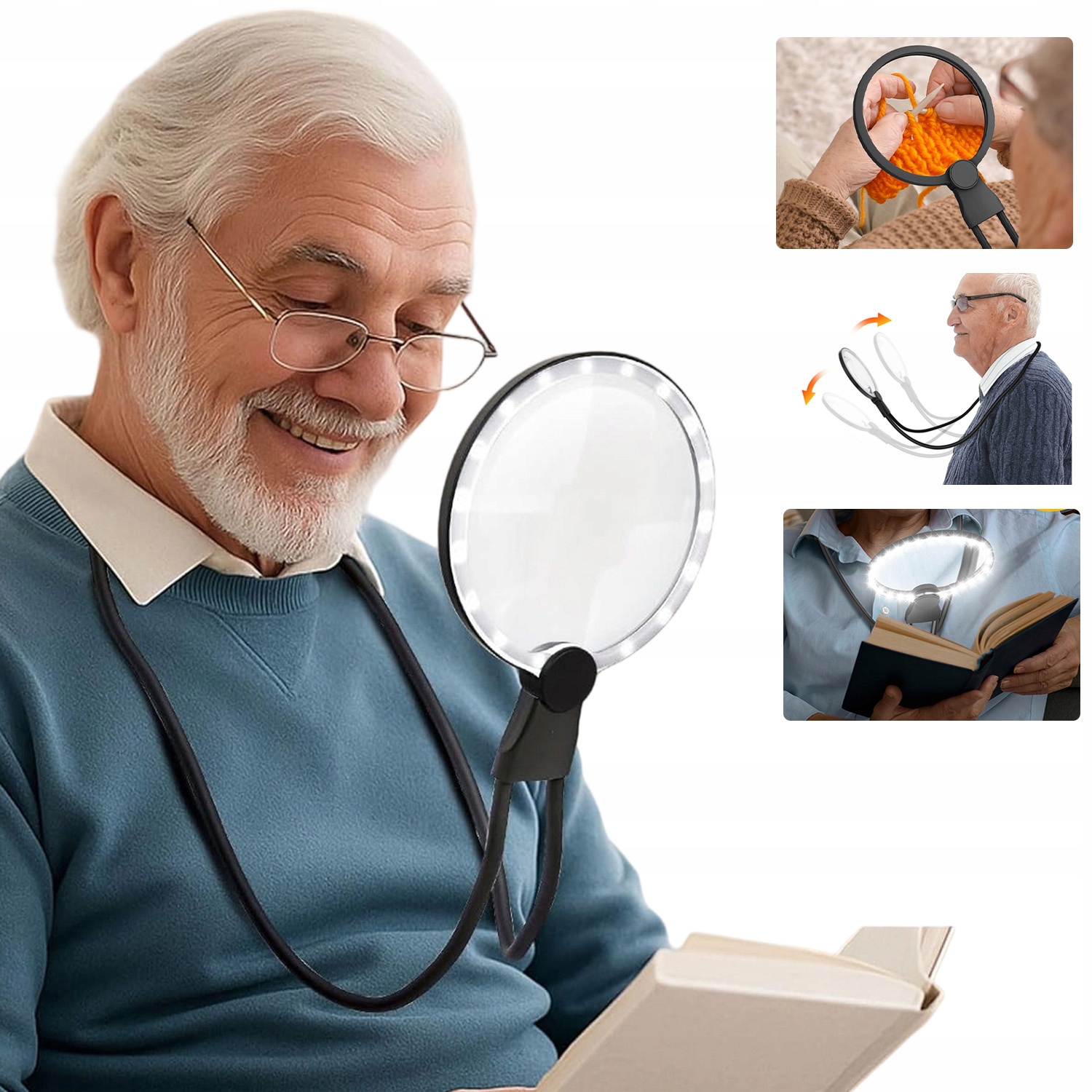 Ця лупа світить набагато яскравіше, ніж традиційні скляні лупи. Міцна шийна петля забезпечує стабільність і гнучкість, що робить його надійним інструментом для різноманітних видів діяльності, особливо для людей із слабким зором.