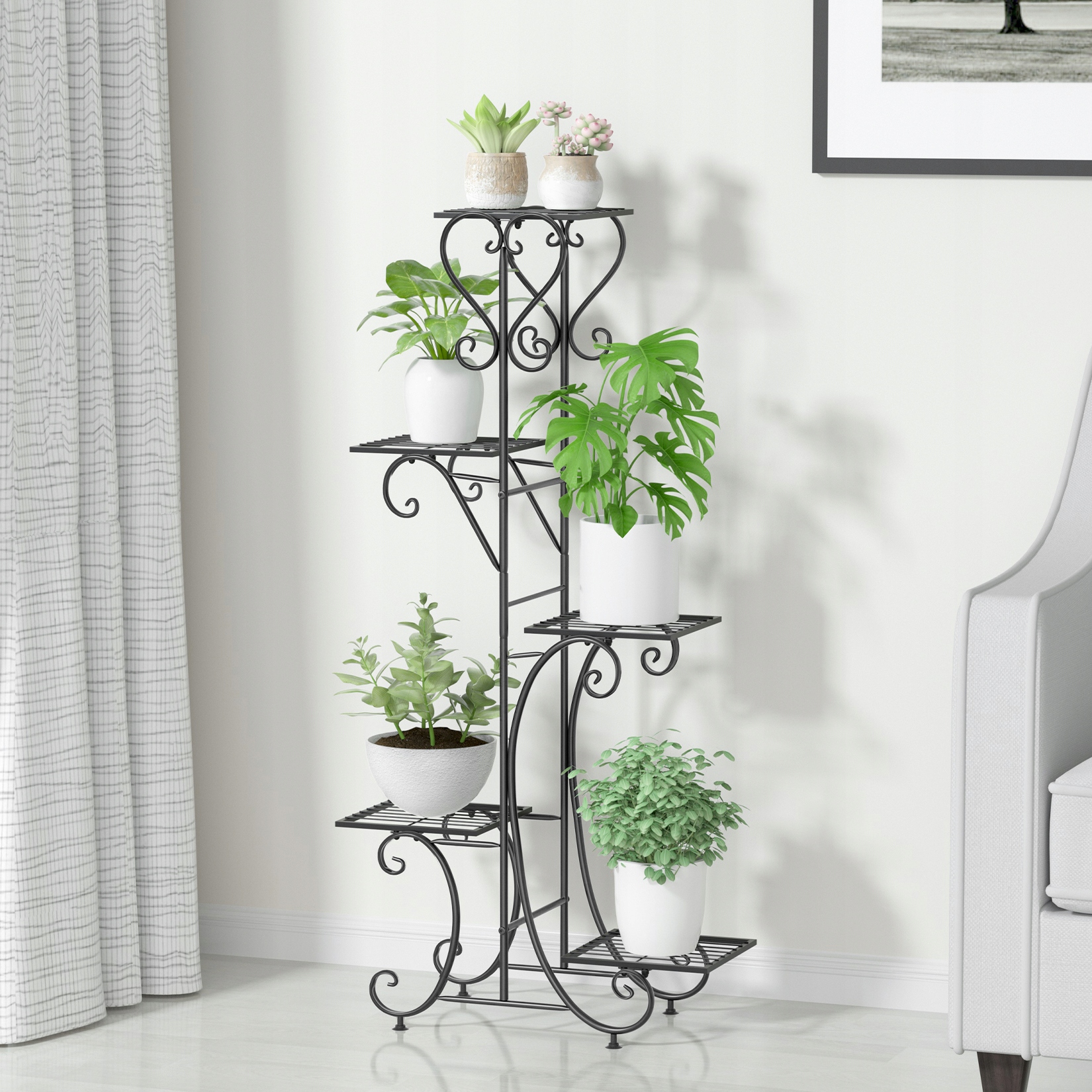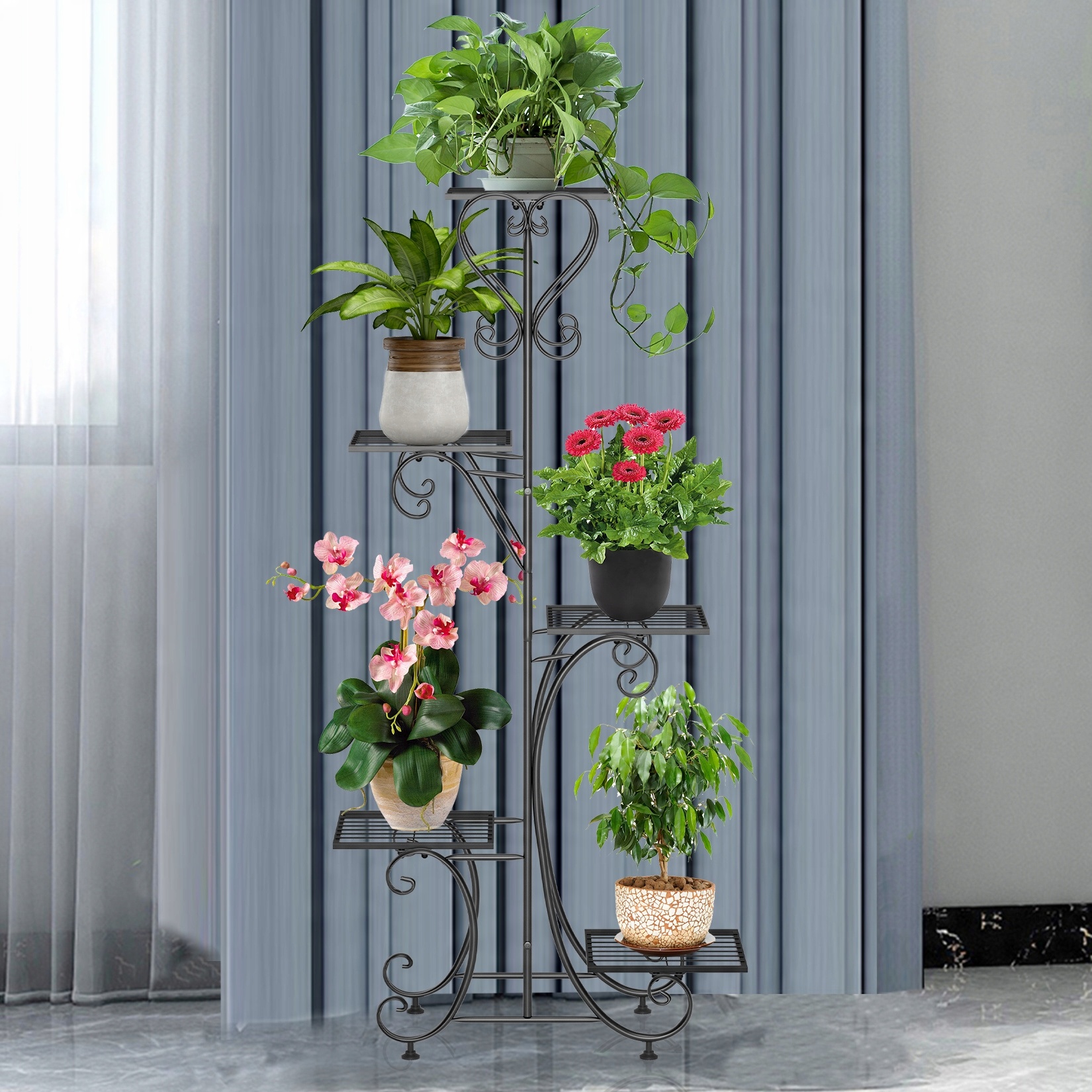 【Простий мінімалістичний стиль】Стильна підставка для рослин unho дозволяє 5 рослинам мати відкриті місця, щоб отримувати світло та воду та краще рости. Це зробить ваш балкон, патіо або сад романтичним і стане раєм. І всередині, і зовні. Вишукано чисті та вигнуті лінії для гарного зовнішнього вигляду, простий стиль доповнює різноманітний декор будинку. Поєднується з будь-якими зеленими насадженнями для декору. Також використовується як полиця для зберігання книг.
