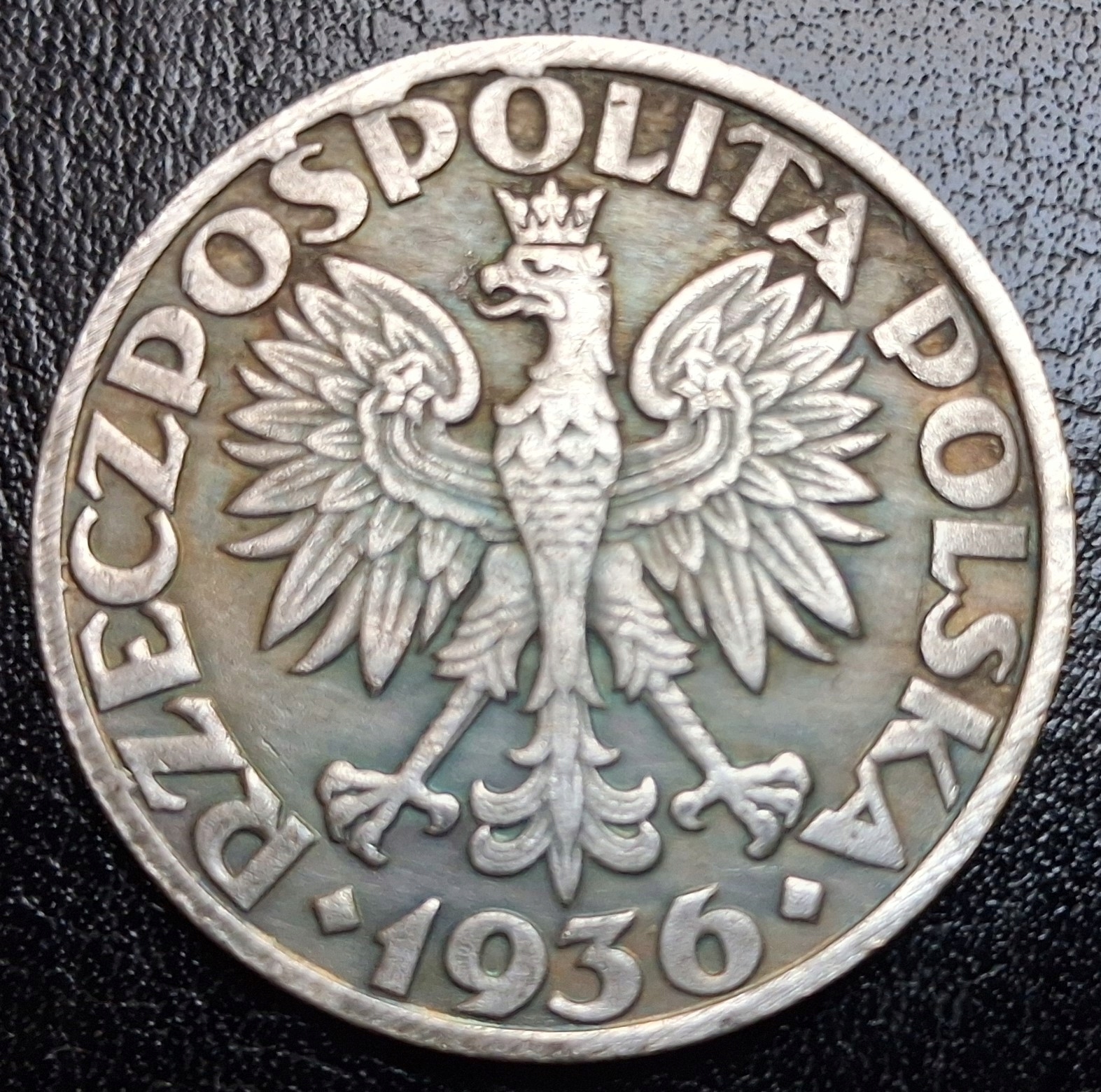 5 Zlotys 1936, вітрильний корабель, Польща, зразок, візерунок,