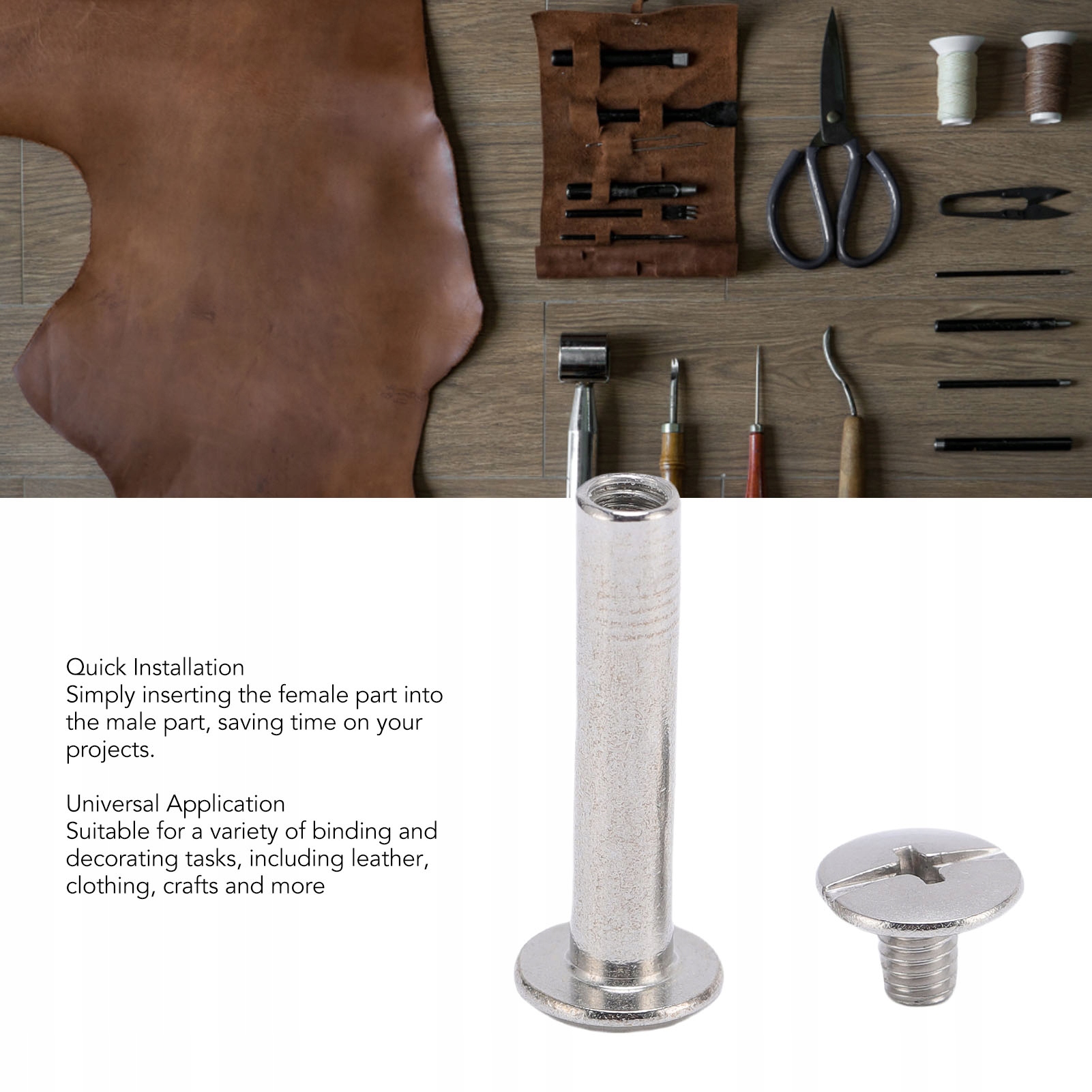 5. Універсальне використання: ці заклепки та гвинти підходять для широкого спектру палітурних і декоративних завдань, зокрема для шкіри, одягу, ремесел тощо, покращуючи загальний вигляд ваших виробів.