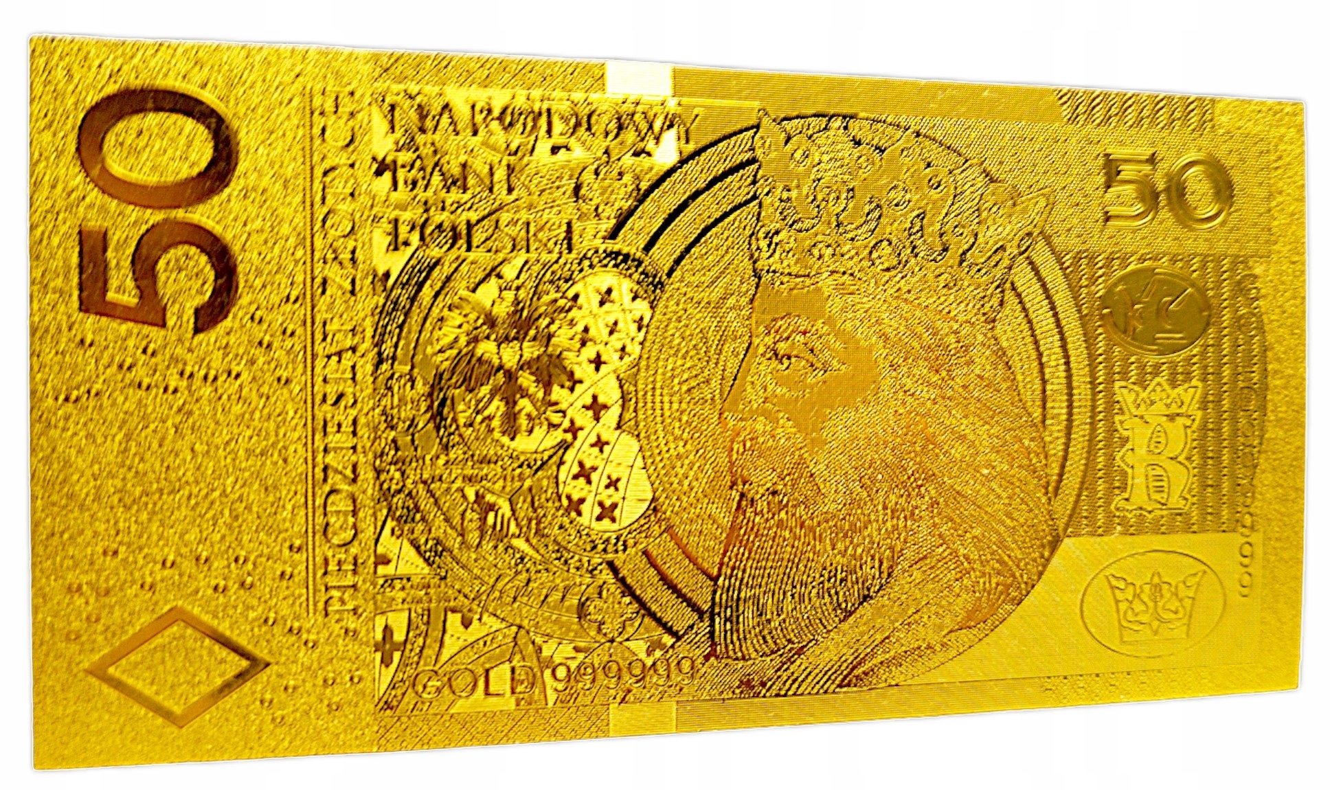 Красива колекційна позолочена банкнота 50 злотих КАЗИМЕЖ III ВЕЛИКИЙ