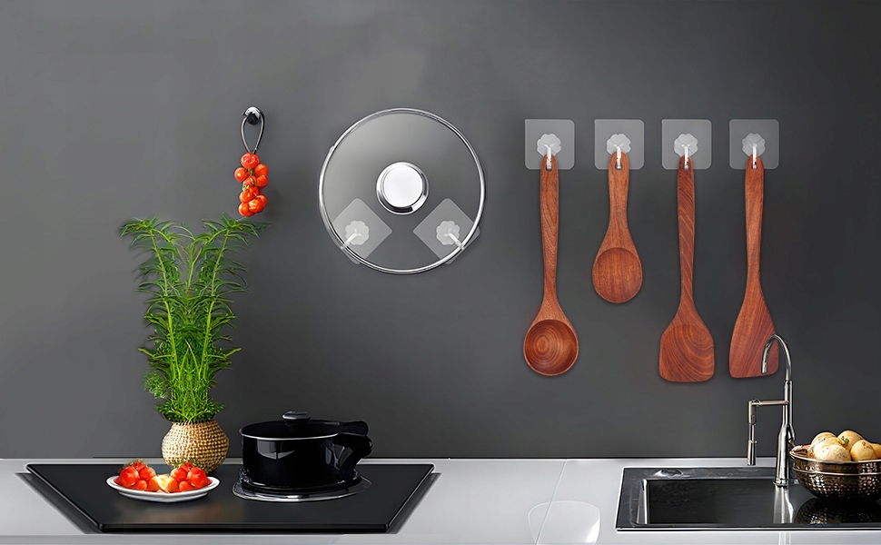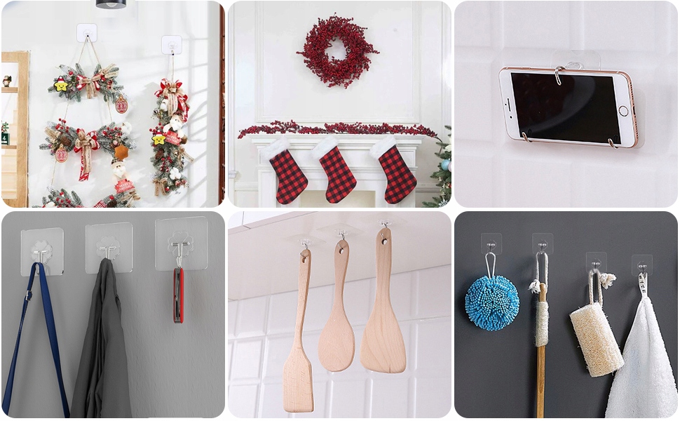 Ці самостійні гачки ідеально підходять для підвісних столових суден, кухонних начиннях, клавіш, пальто, шапки, рушників, рамок з фото, маленьких рослин та інших предметів.