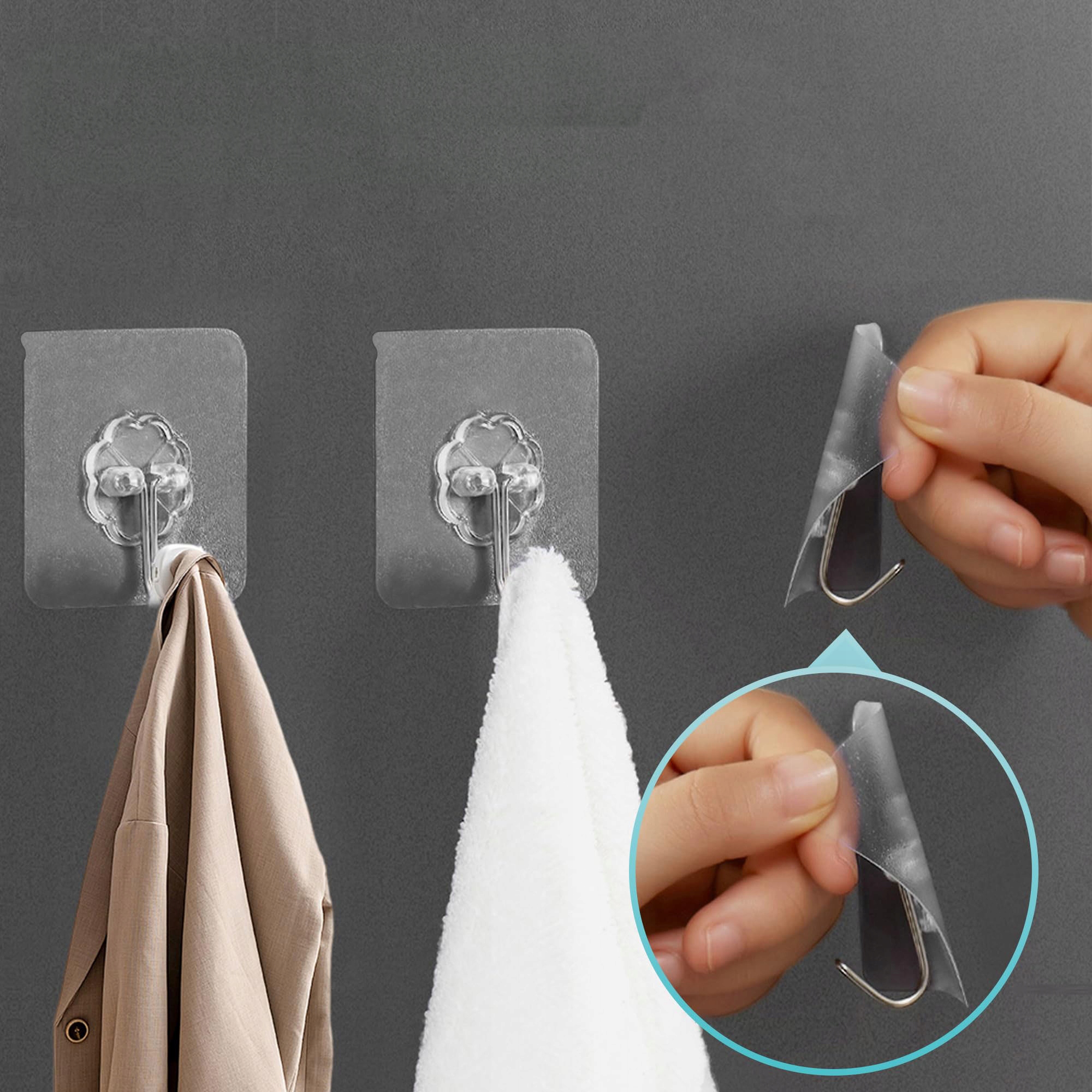 Само -адгезивні гачки виготовлені з 304 нержавіючої сталі та полікарбонату, які характеризуються стійкістю до іржі та корозії. Ці універсальні гачки надзвичайно міцні у вологих умовах і ідеально підходять для довгострокового використання.