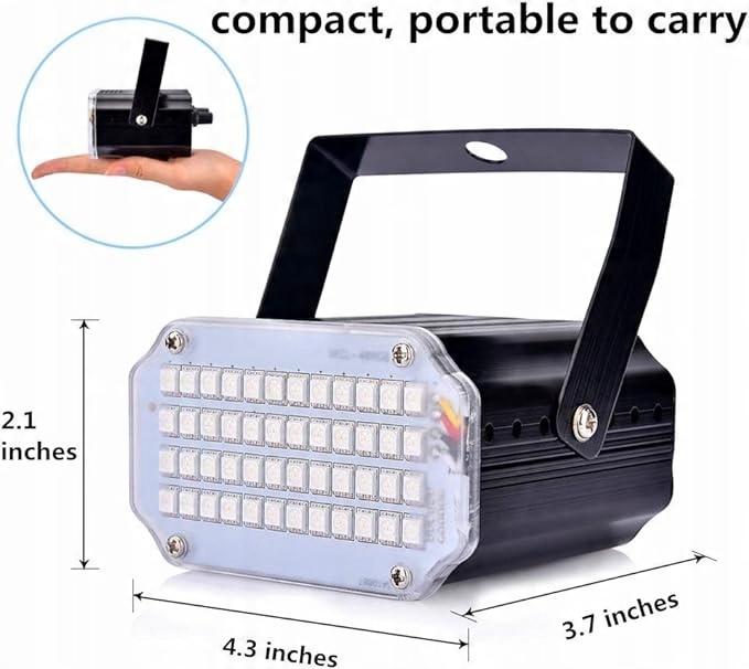 Міні сценічний стробоскоп із 48 надяскравими світлодіодами, м’яке 7 кольорів, сценічне освітлення з активацією звуку, автоматичний режим блимання, регульована швидкість спалаху, бездротовий пульт дистанційного керування, ідеально підходить для диско-вечірки