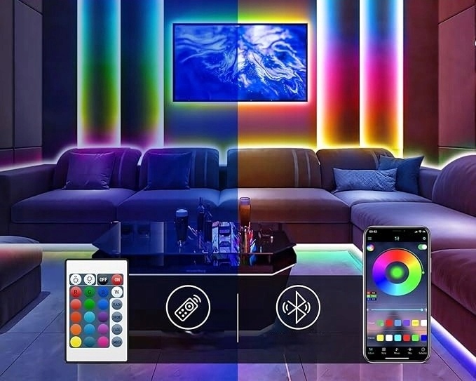 СВІТЛОДІОДНА СТРІЖКА 5 М RGB У РИТМІ МУЗИКИ МОБІЛЬНИЙ ДОДАТОК З ЗАТЕМНЕННЯМ BLUETOOH