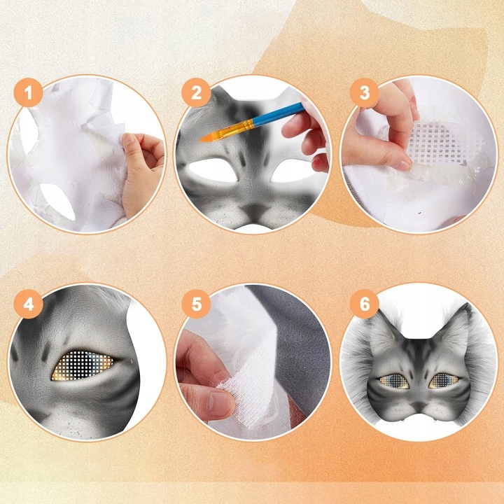 6 × кішка маска для обличчя Тріан Хеллоуїн Кіт -маска для малювання DIY