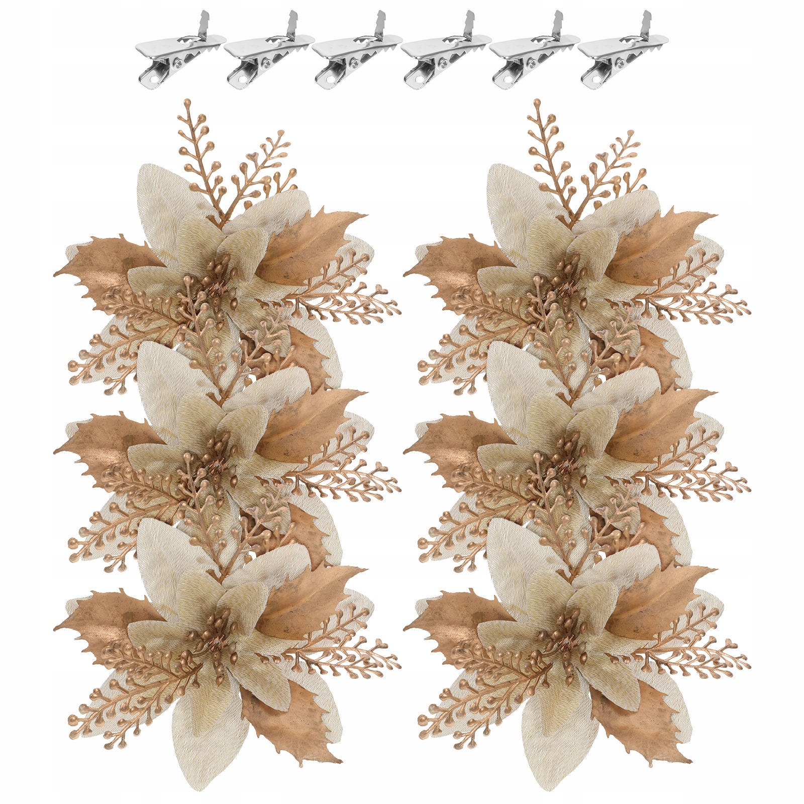 6 ШТ. РІЗДВЯНІ КВІТИ В ТОЧКОВОМУ СЕКЦІЇ, ЯЛИНОВІ ПРИКРАСИ КВІТІВ З БЛИСКОМ